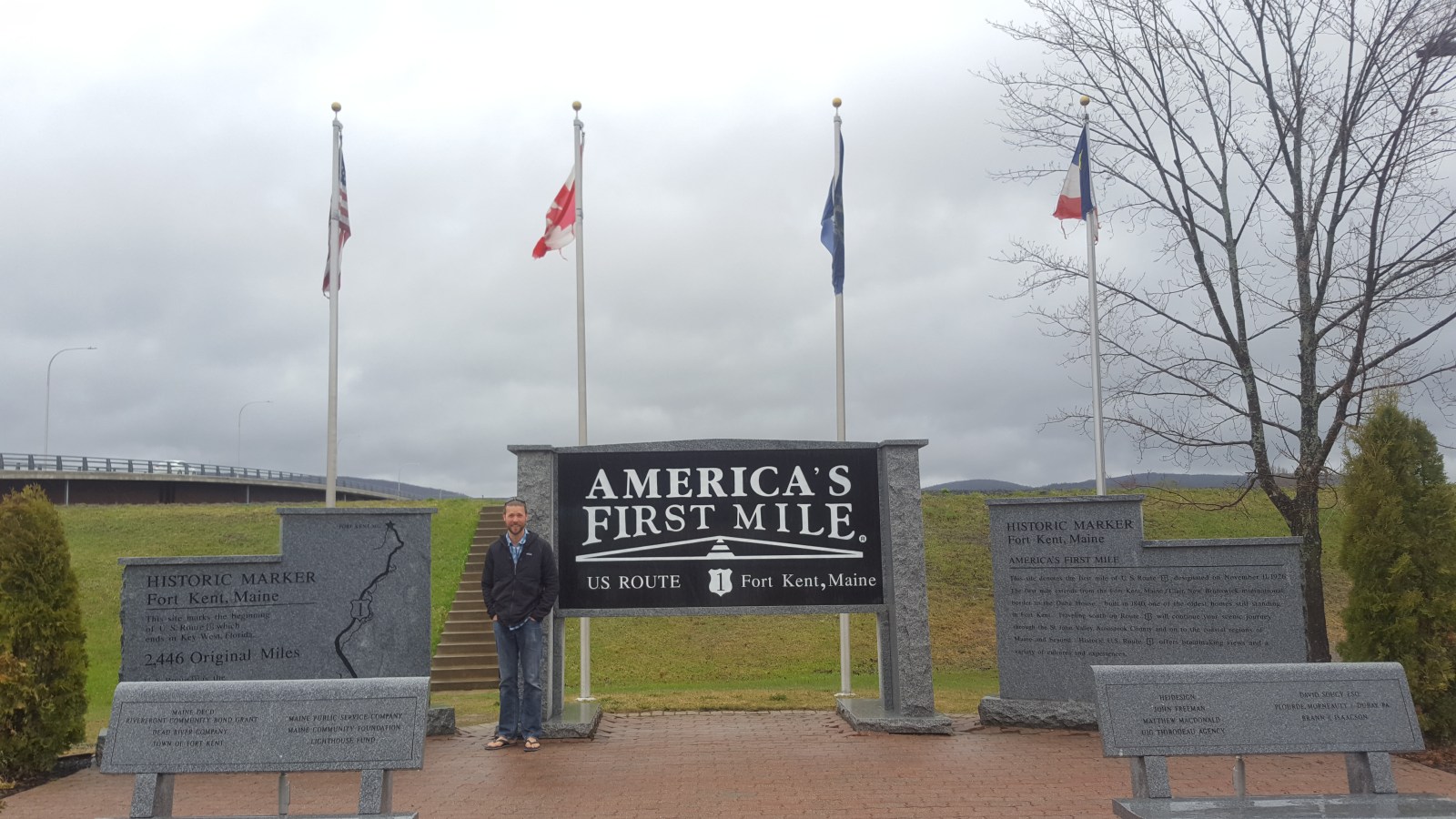 Dy 40: It only took us 40 days to reach our goal! We traveled from Minnesota, down through Texas, across the bottom of the U.S., and drove all the way down to the Florida Keys start at the end of Highway 1. Now, at the top of Highway 1 in Maine, we have completed our mission.