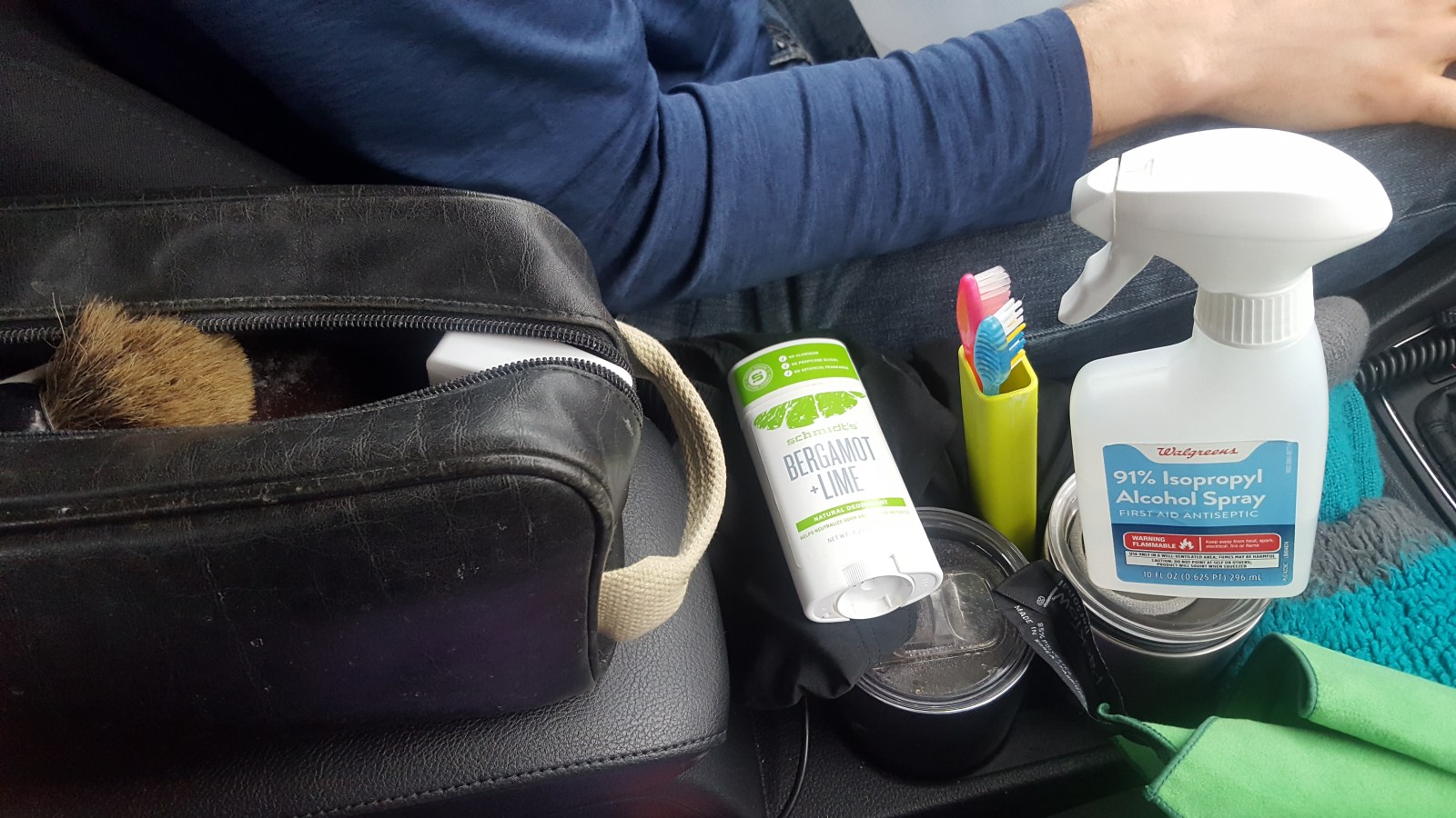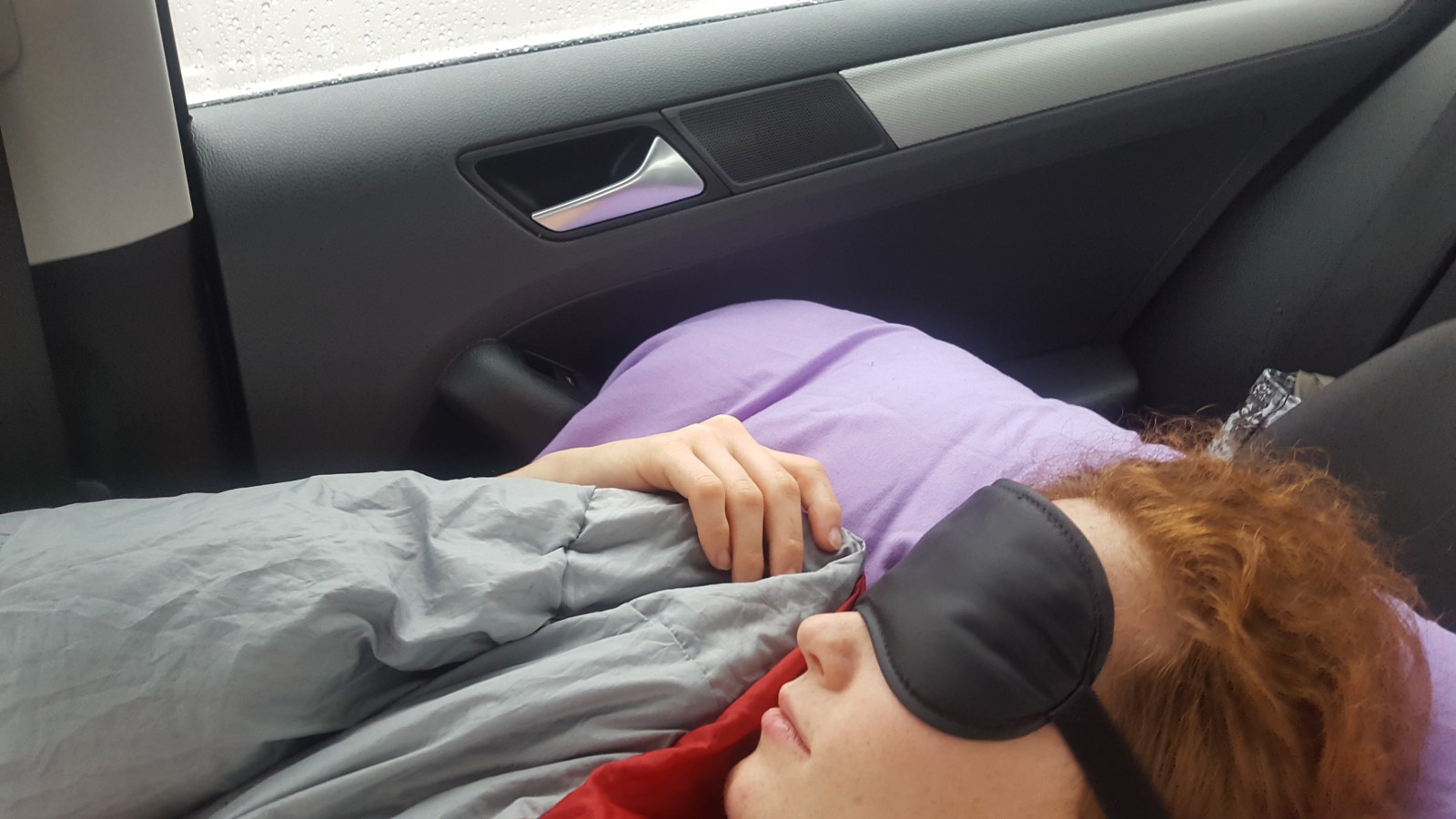 Day 4: It rained during the night apparently? I was out cold and didn’t notice I was getting damp.  When we sleep in the car, we crack the windows a little to allow air flow in because there are two humans inside a small space and Chad steals my air at night! So a little of the rain made its way on to my sleeping bag. Thanks Costco for your parking lot! It was cozy.