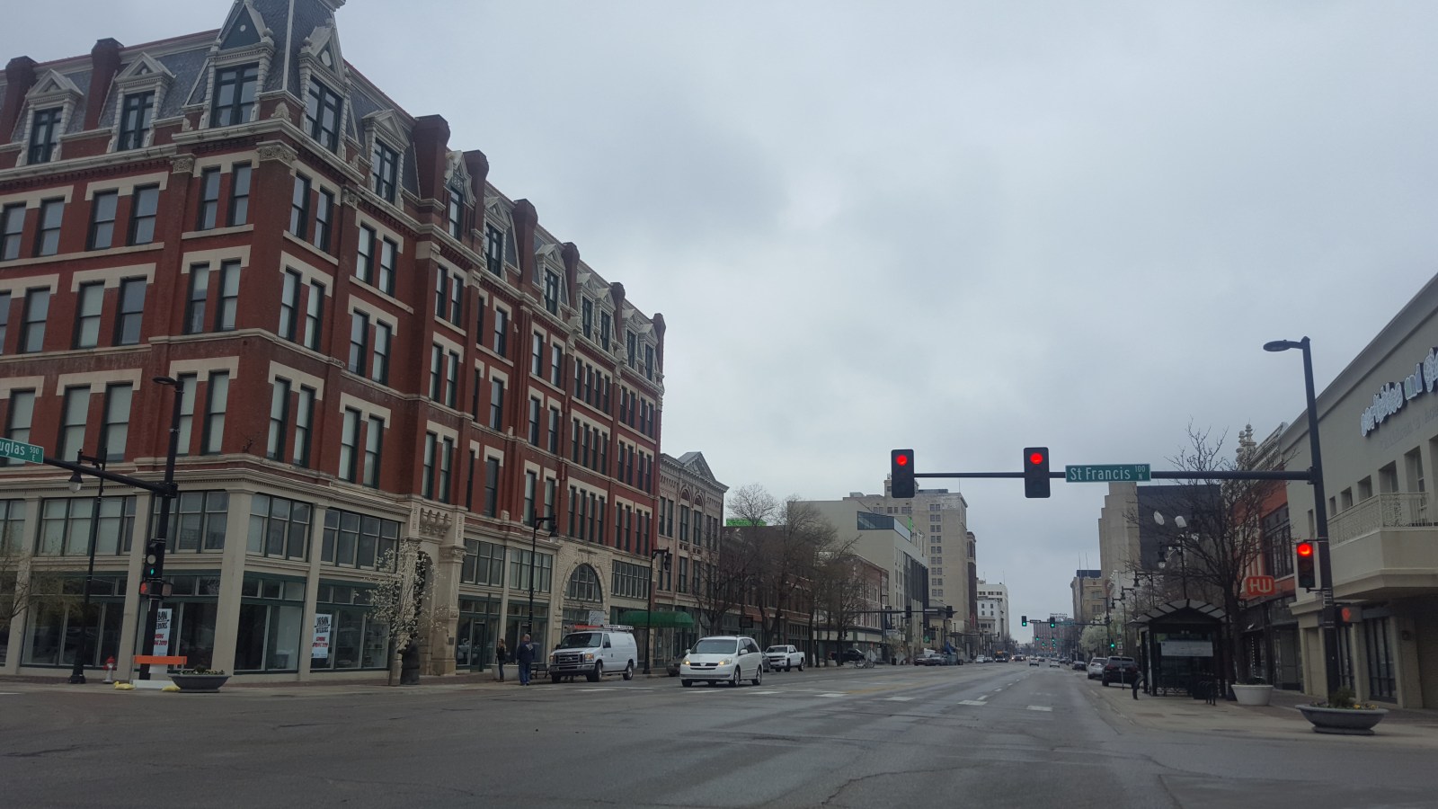 All cleaned up at a local gas station, Chad and I wandered around Wichita. While Chad drives, I peek at the GPS and narrate what we are passing. It’s very helpful! There was a cool looking shopping center (old bricked building) that I was interested in walking around and told Chad, “We should go walk this little area, it looks cute.” To which Chad replied with a smirk on his face, evil grin, and eyebrows raised, “Walk it with your eyes!”.