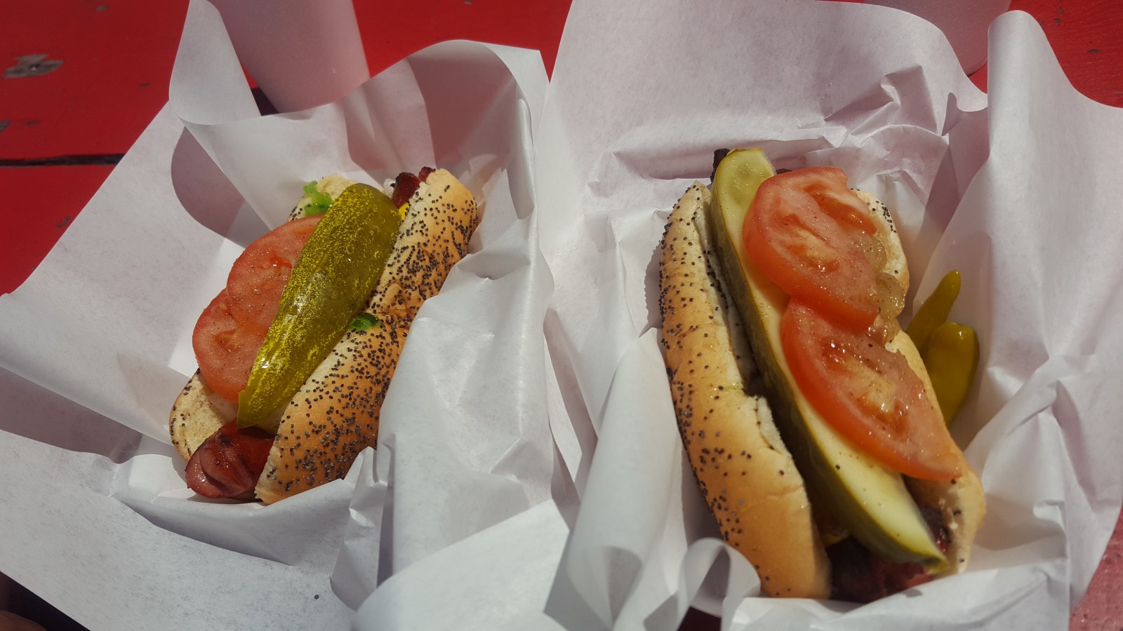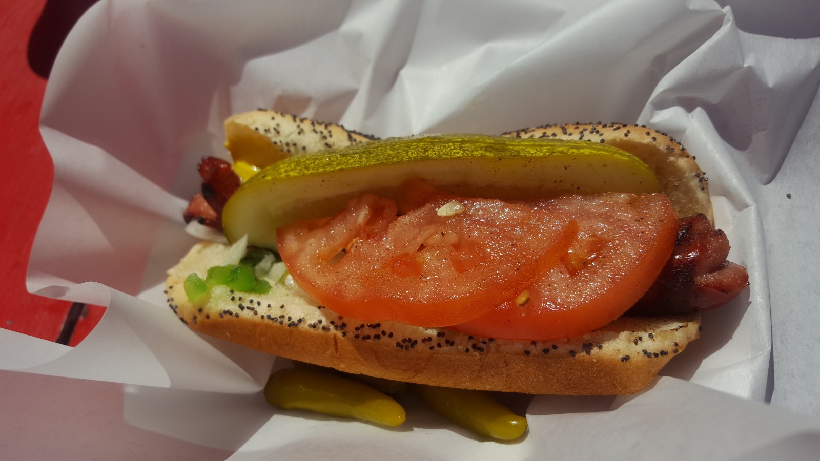 REALLY good hotdogs: char wiener, a pickle, relish, mustard, tomato, pepper, onions (raw on one and sautéed on the other) ALL hanging out together in a poppy seed bun. The bun was rockin’ because it didn’t break the whole time.