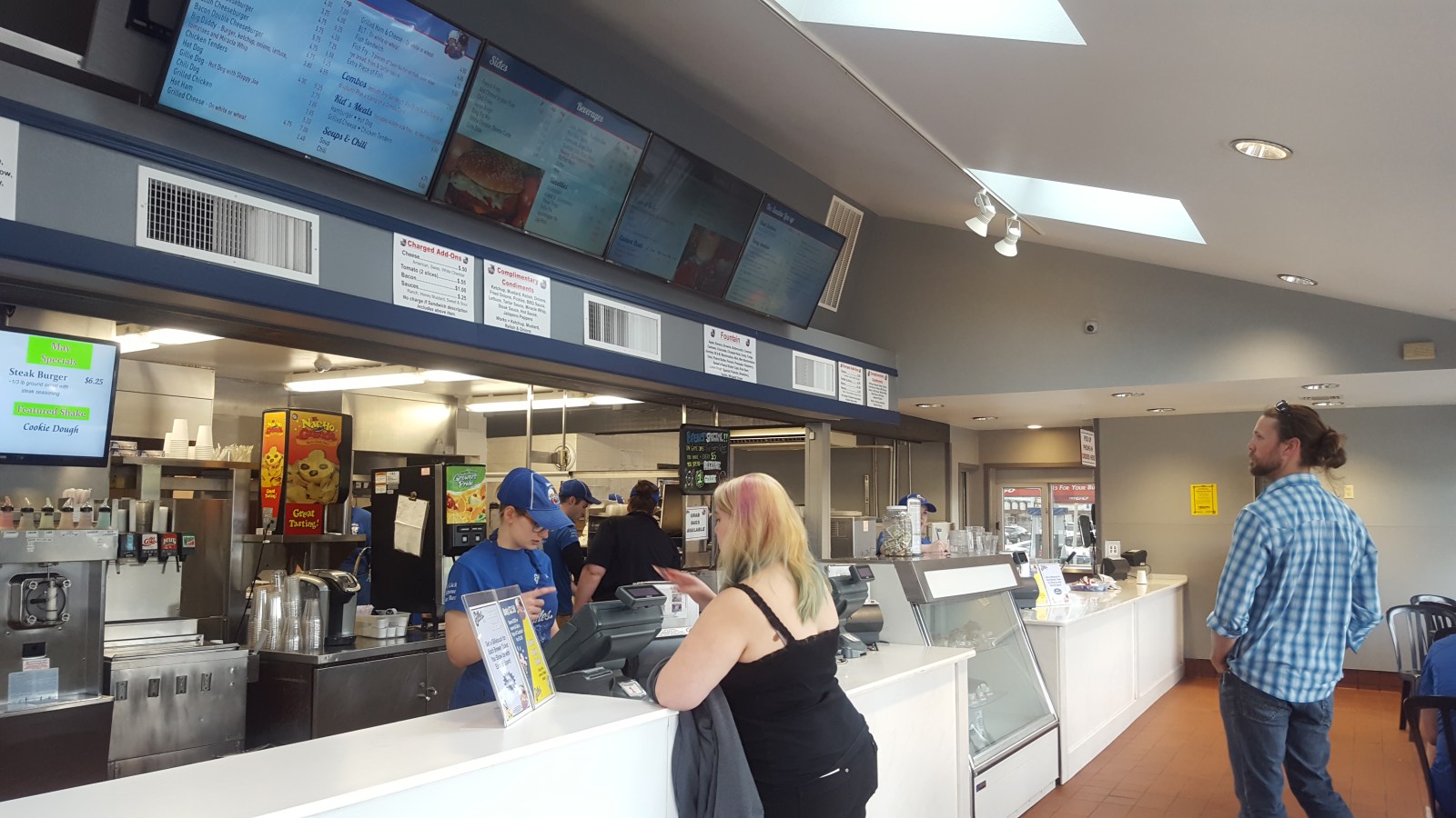 While waiting for our dogs to be charred on the grill (real flames!), Chad snagged seating on the picnic benches outside while I chatted with the locals inside. An older lady called me Minnesota and made me try her fries because “they are the best fries in Chicago”. They were pretty good fries. She also made Chad try her fries too. Lol 😉