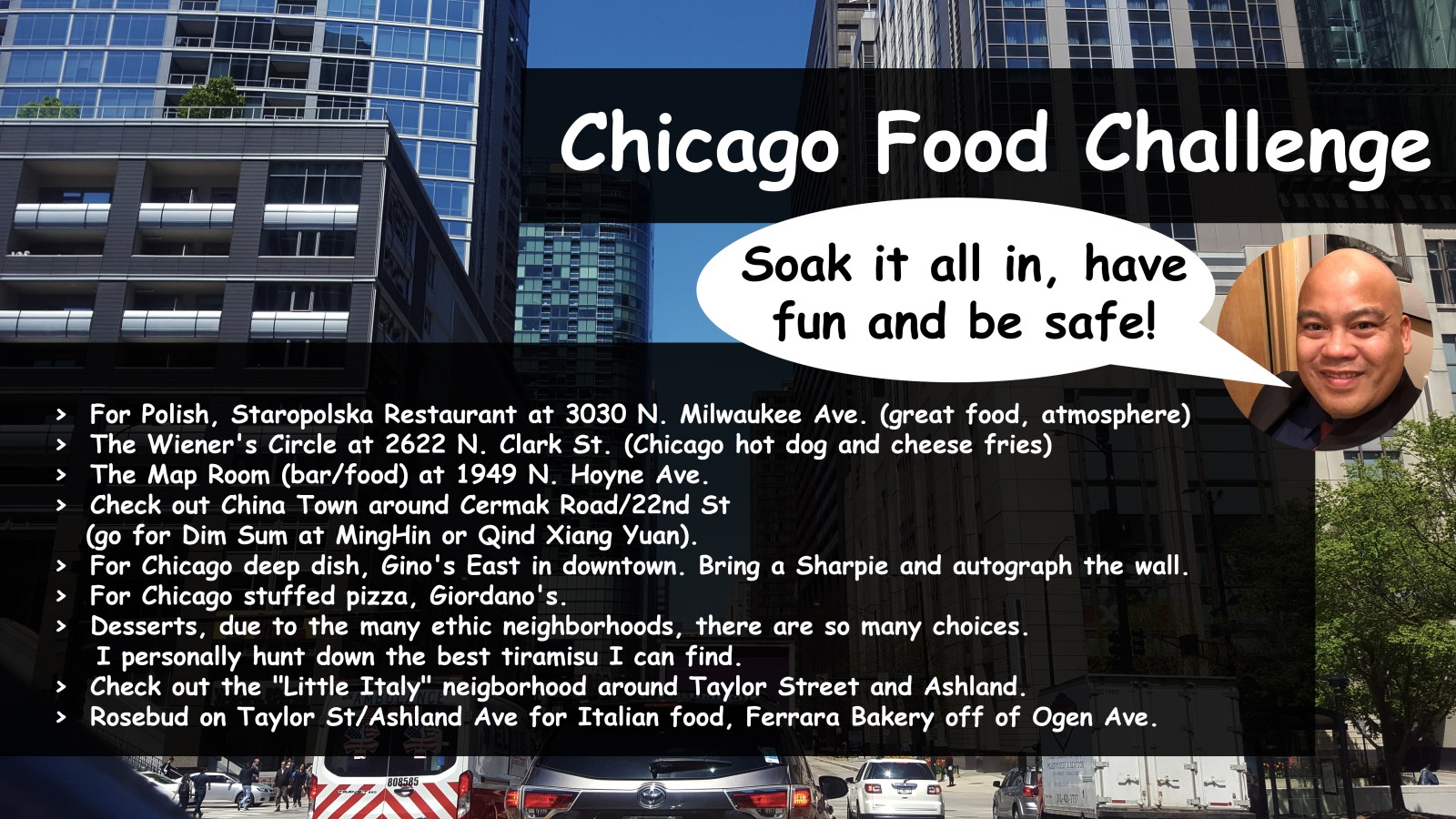 I had reached out to our friend Glenn to ask about places to eat in Chicago as he used to roam and school there. He supplied a variety list of foods and we tried to complete the mission.