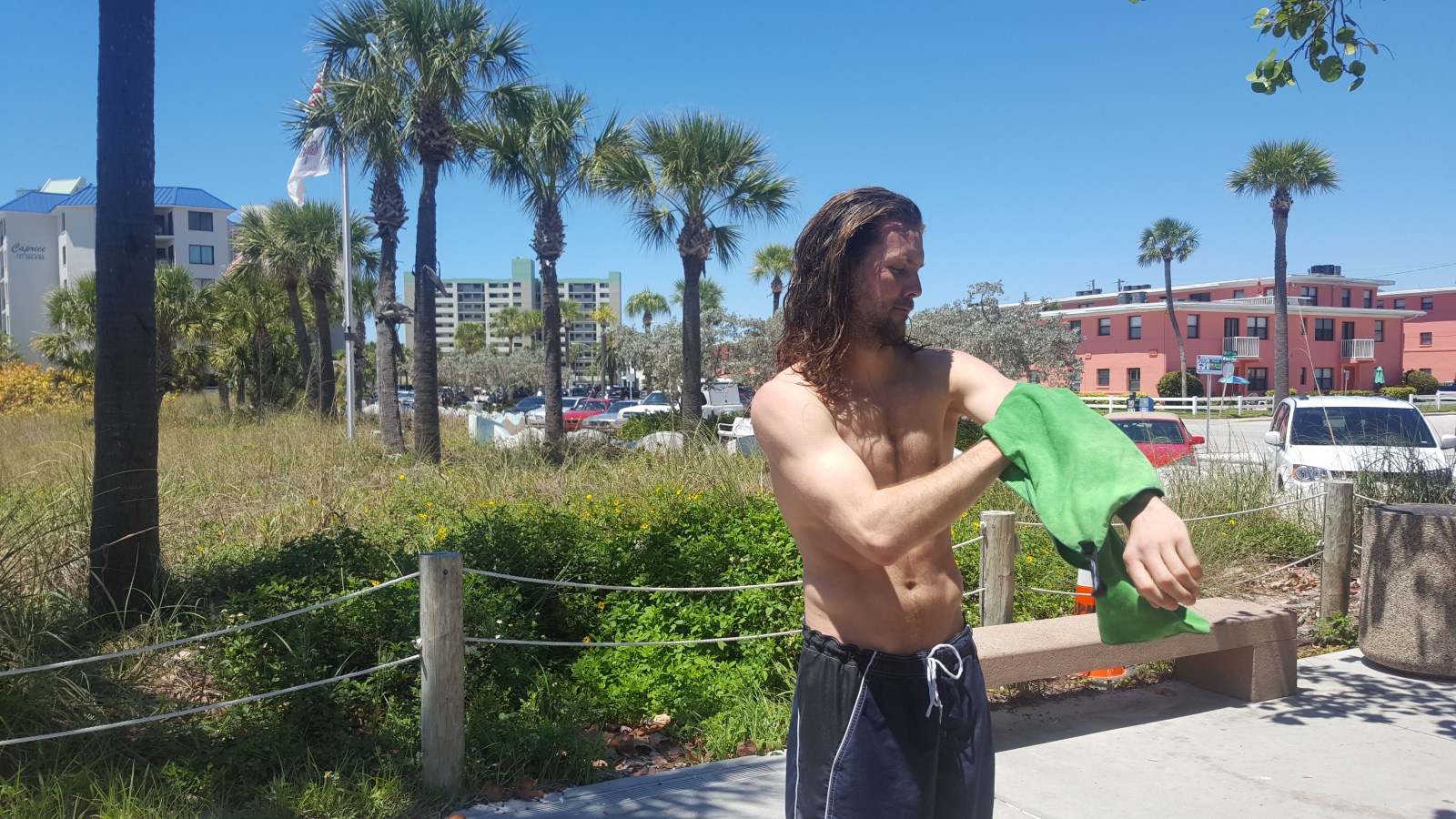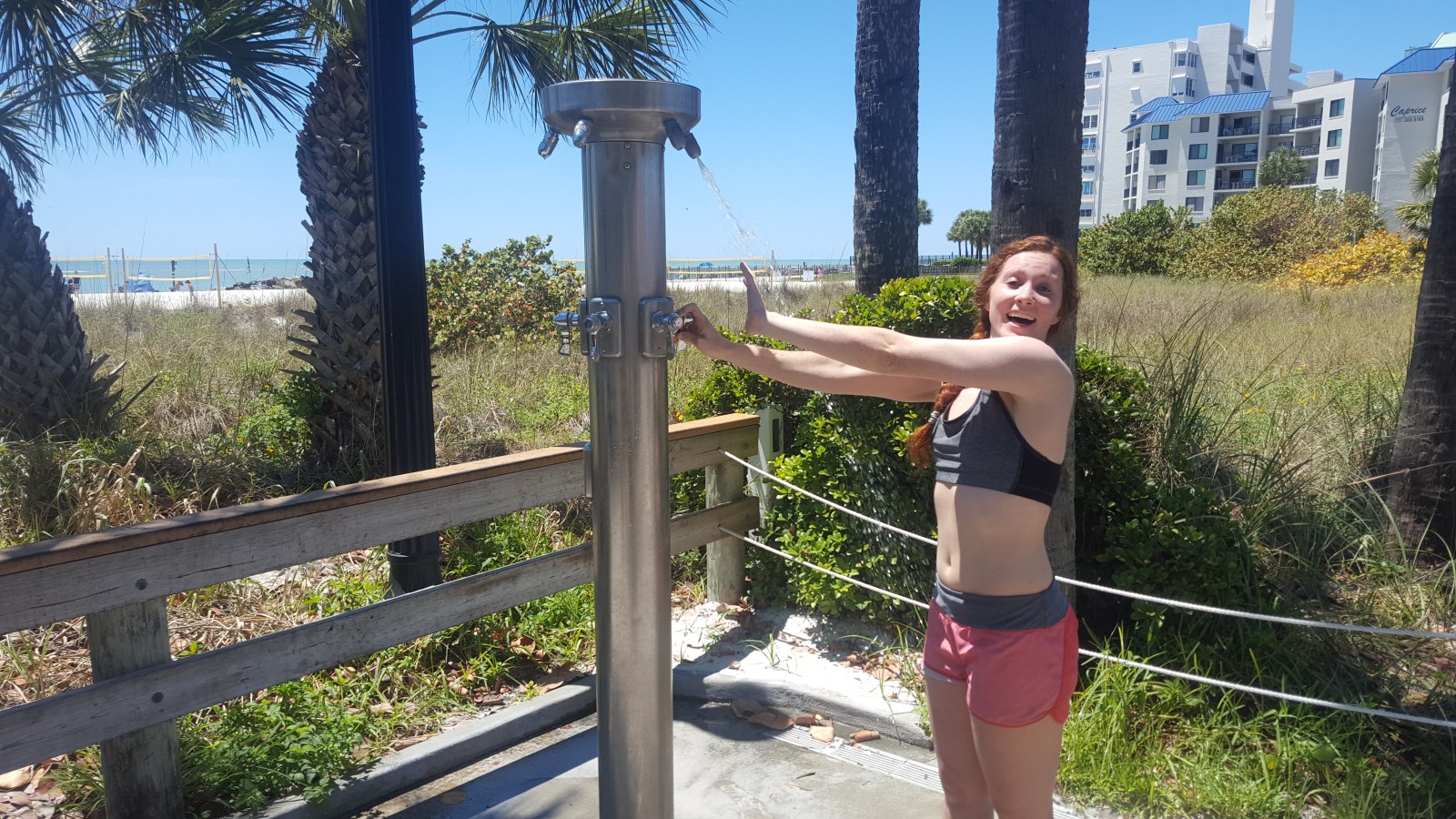We made it to a real, pretty beach! And where there are nice beaches, there are also showers. Hello, cleanliness! At this point, it has been 8 days since our last shower in Dallas, TX. We have been routinely using wet wipes multiple times a day to make sure we can comfortably sit in the car with each other without holding our noses.