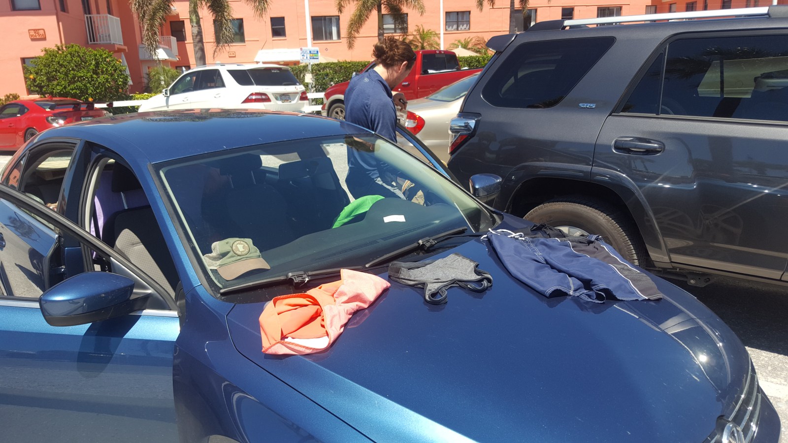 We also rinsed out some of our Patagonia attire (Patagonia Princesses all the way) and dried it on the hot hood of the car. They were all done in no time!