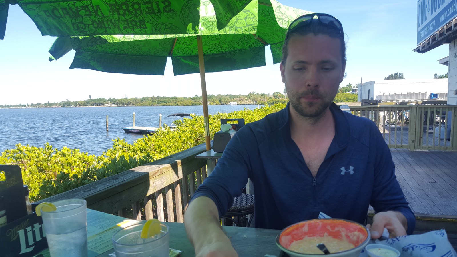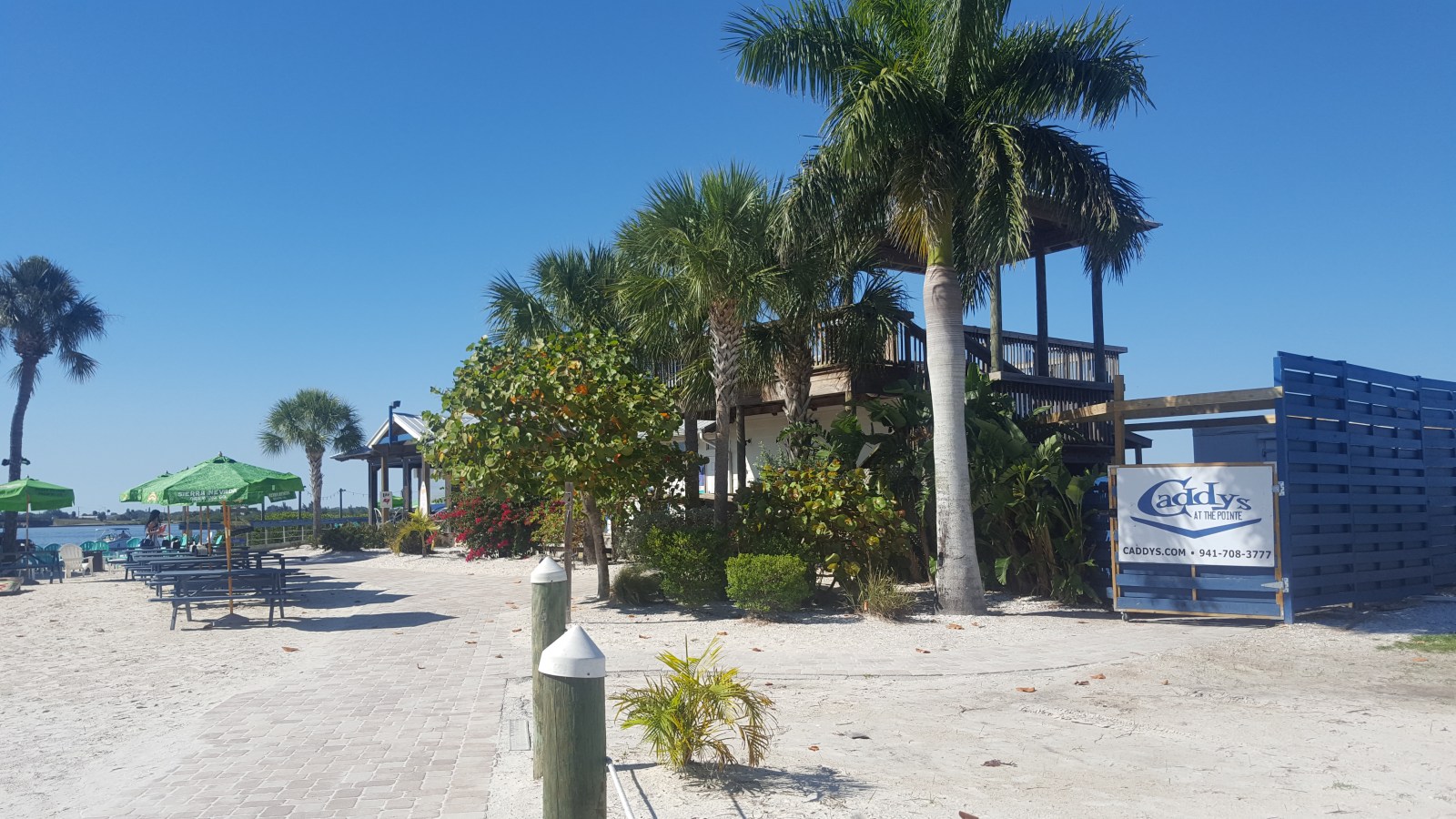 First stop on the list was to cross the Tampa Skyway Bridge from St. Pete’s peninsula onto the main land.  We then set the GPS to Caddy’s at the Beach for dinner.  OH HO HO!  They had beach front property, volleyball nets and indoor/outdoor seating.  Welcome to the vacation destination restaurant!