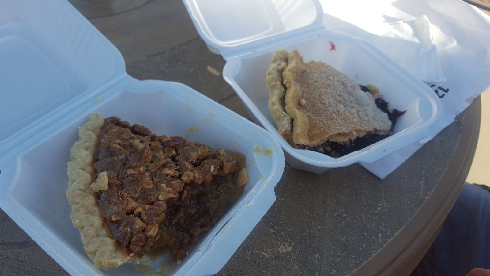 But first, PIE! :) Chad found a little Yoder's Amish Village restaurant that has over 30 homemade pie flavors available and a little restaurant (there was also a veggie stand).  We ordered pie to go from their to-go window and ate outside on their pavilion.  The pecan pie was REALLY something.