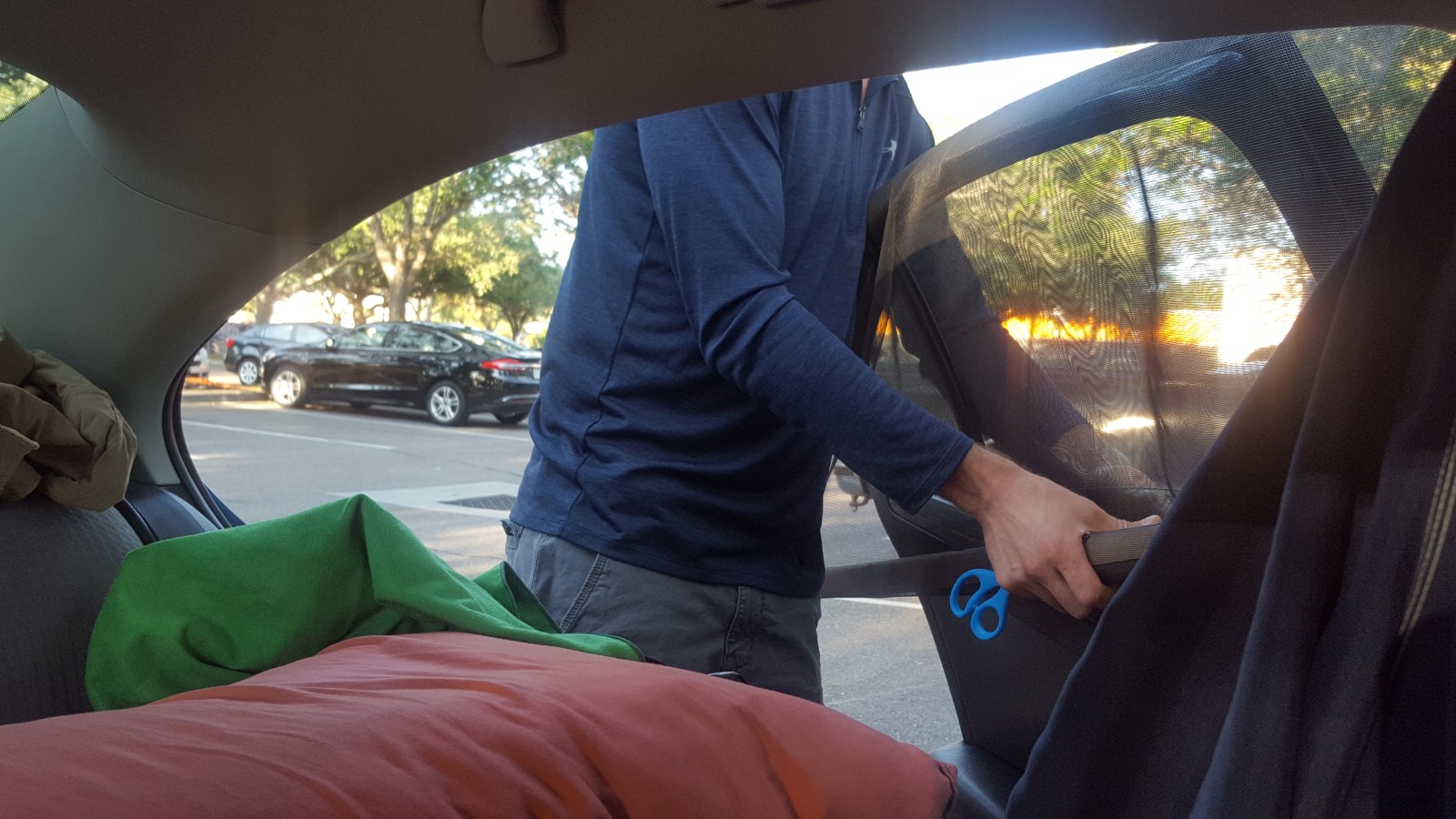 Now, the bugs are actually active at night and I had to defend our fortress from a little quarter-sized spider trying to crawl in last night.  We actually had to take action now and figure out how to put bug screens up on the back seat windows.