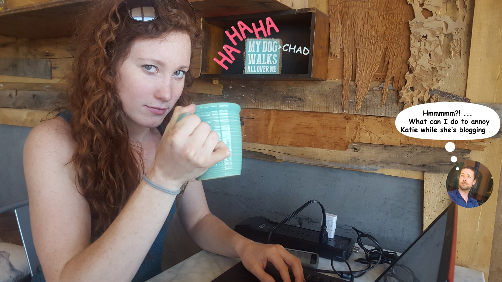 Caught up on the blog, Chad started to launch ideas out of nowhere and rapidly talking.  I think the caffeine hit…hard.  We made a cartoon out of myself sipping coffee and a collage of Chad’s many stages of beards. Check out yesterday’s post to see Chad’s previous majestic millennial beard.