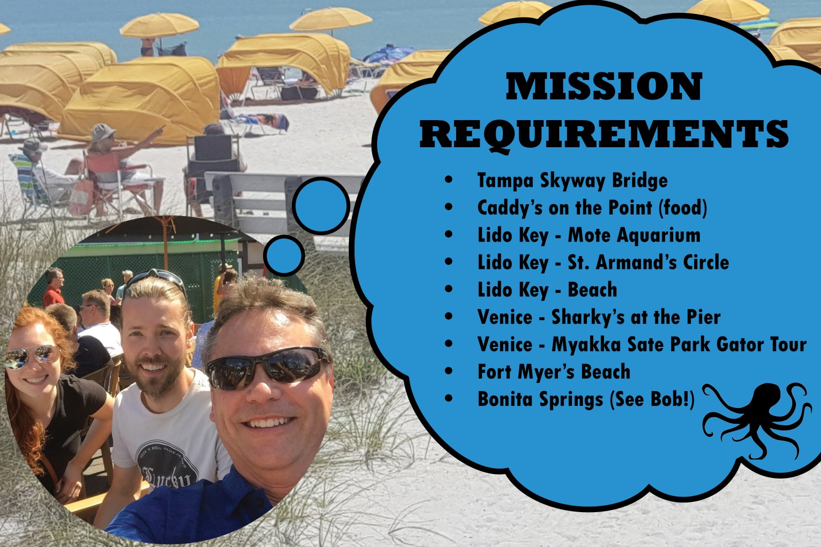 Our friend Bob, who we are in route to visit, recommended a list of things to see while we make our way down the west coast of Florida. We are ready to accept the missions.
