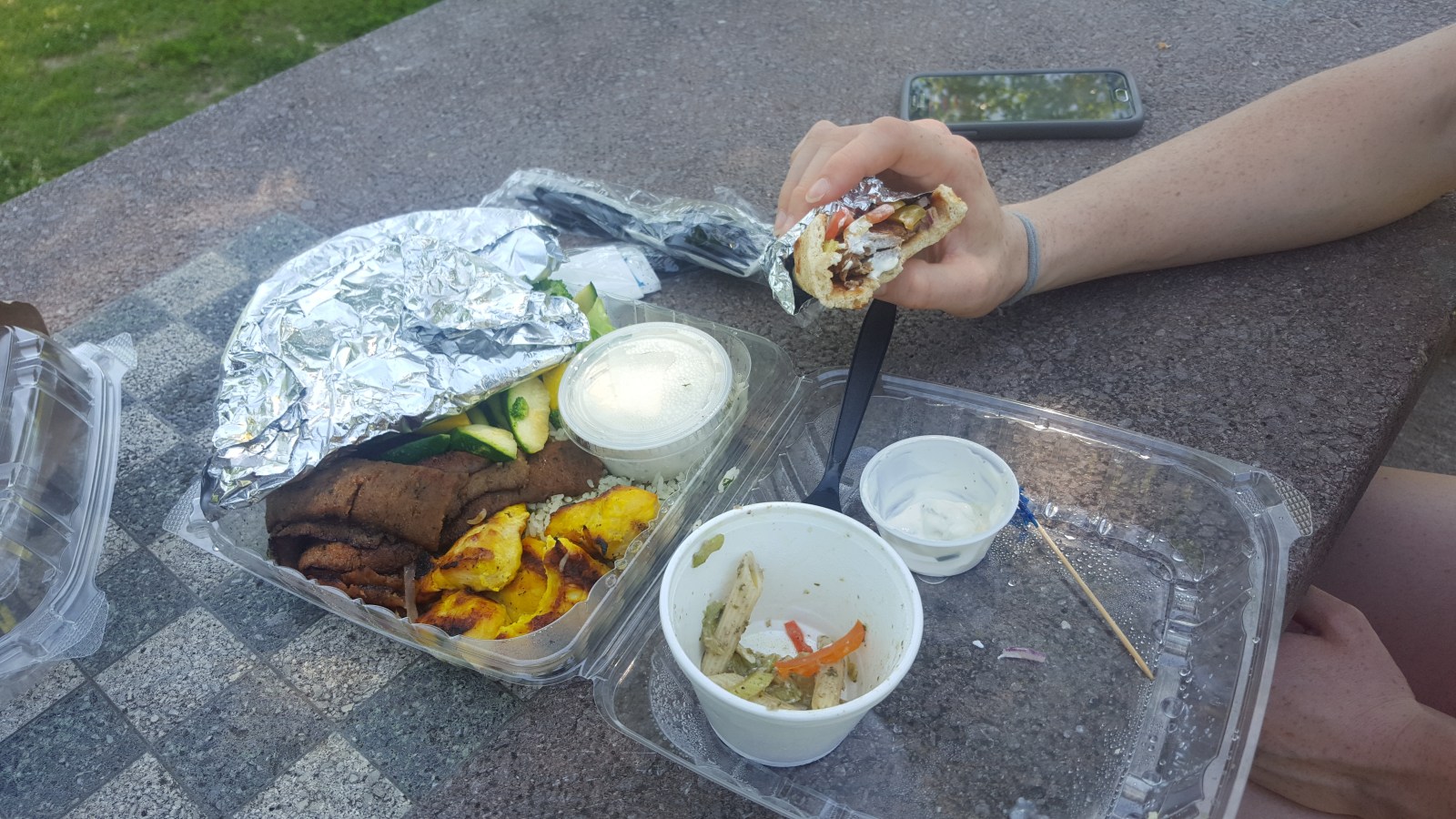 With a hangry Chad, I found a Mediterranean restaurant within walking distance and we took our gyros to go. Time for a picnic in the park! There was only one picnic table perfectly resting in shade calling our name. The gyro was refreshing and the Greek salad was awesome. We also tried a build-your-own-gyro dish with sauteed fresh veggies and chicken. It wasn’t the best, but anything tastes good with the tzatziki sauce.