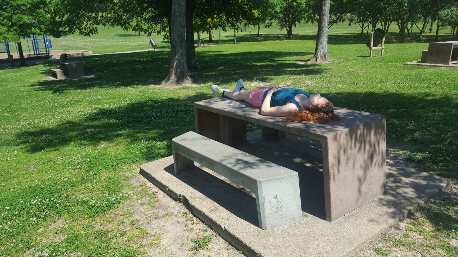 Chad found a location for us to go walk around a park and I drove (the second time of the trip, woot woot). When we drove by the intended park, it looked like a memorial and had little parking. We kept going and found a larger parking lot a few miles up the road and the greenery spread in gentle hills within the large city.