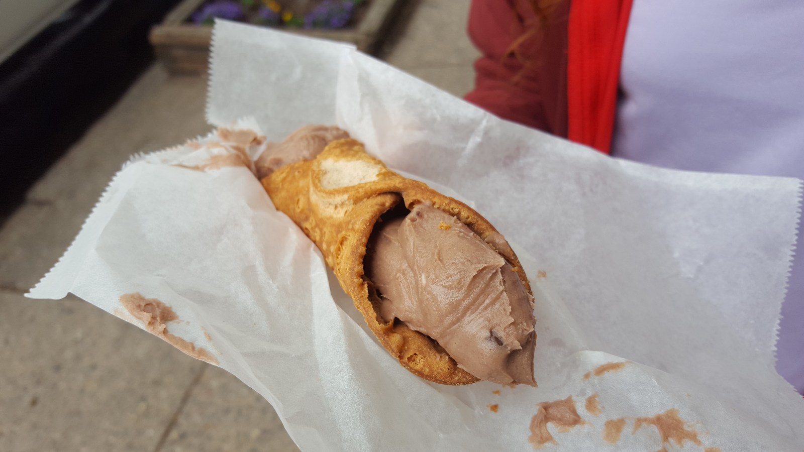 Sarcone’s Bakery: Super old, super good. Granted, we only tried their LAST cannoli pastry stuffed with ricotta chocolate chip filling. The lady behind the counter was blunt, didn’t have much of an outgoing personality and actually filled the cannoli right there on the spot. It was reallyyyyyyy good. I would go back. But, forget about the Minnesota nice attitude because it doesn’t really get you any inside knowledge/secrets here, let alone a 'helloe'.