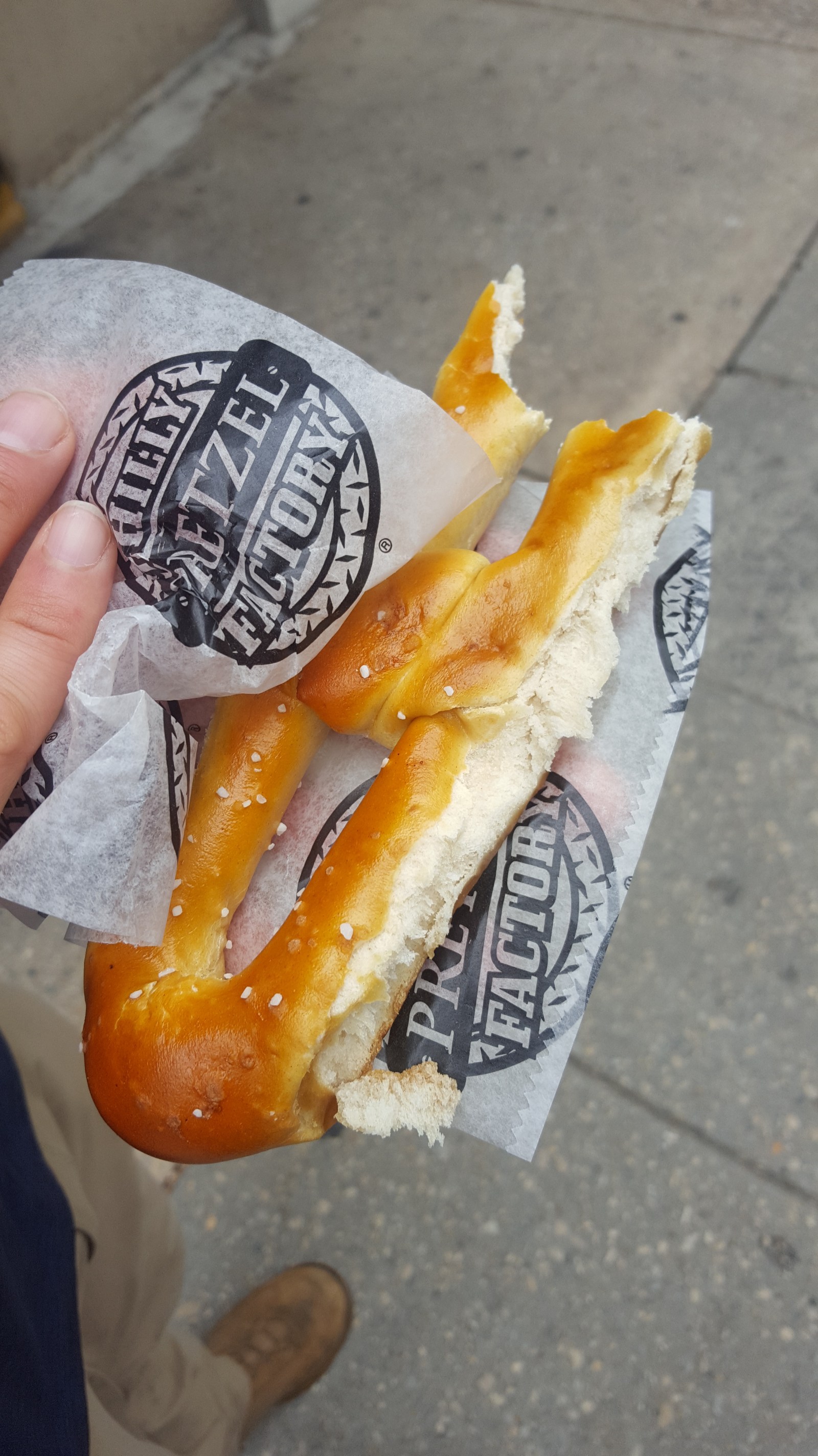 Oh! I also was able to try a Philly-style pretzel that is box shaped for $.85 from the Pretzel Factory!