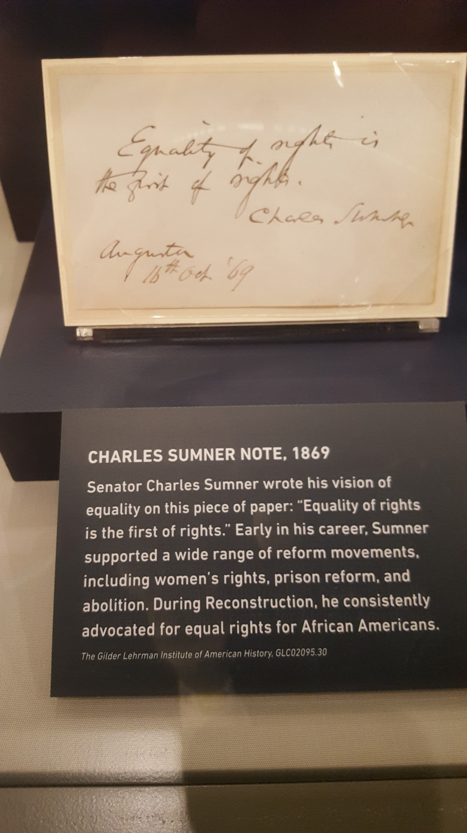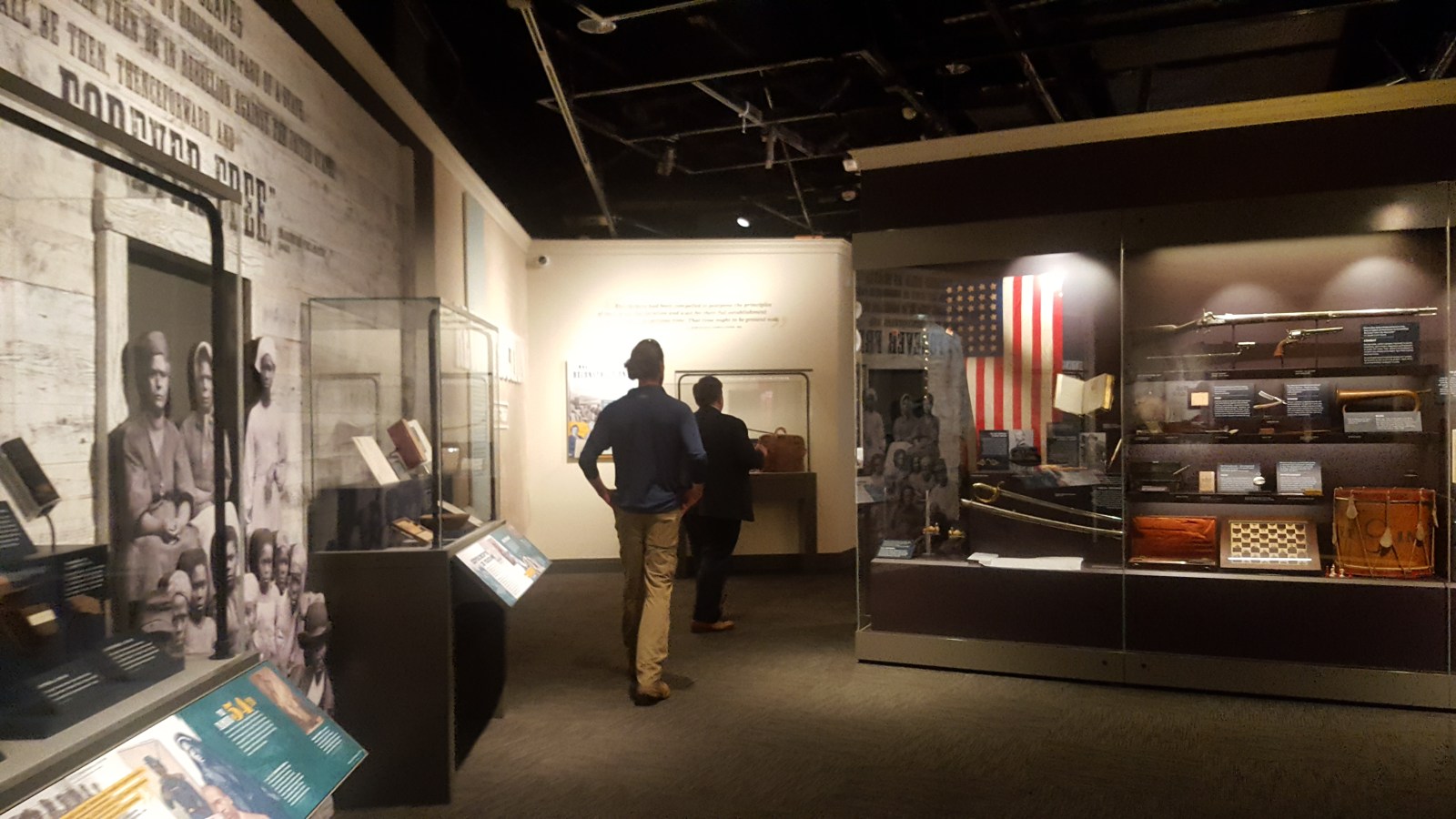 He then took us into the secret exhibit and there we saw the crew still working on the finishing touches of the permanent display.  They were even still placing artifacts into their cases and finalizing the graphics on the walls! (an old ink quill and pot used by former slave Frederick Douglass used to write a letter his previous master rolled by us on a cart and was installed into its exhibit right in front of us.)