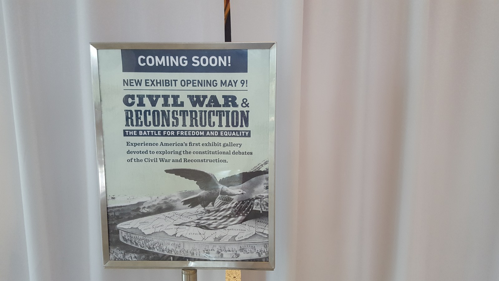 No more than a minute inside this little room, a man approached us and I thought he was going to kick us out for not having a ticket for this exhibit. In fact, he wanted to share with us about a new exhibit they are opening up on May 9 to explain the different Amendments for the United States. Sadly, we were only planning on being in Philly for the day and he found this disheartening. So, he offered to take us on a private behind-the-scenes tour of the exhibit while it was still being worked on!