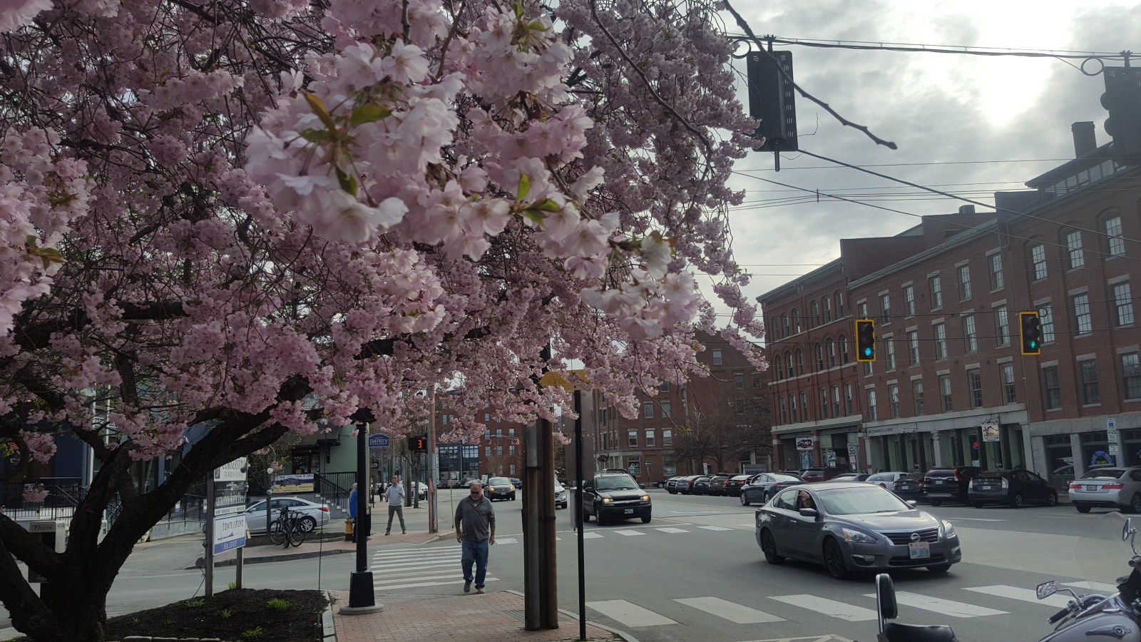 Before setting out from Portland, we found some trees blossoming and a random guy asked if he could take our picture for us. Thanks! I guess the setting was just right.