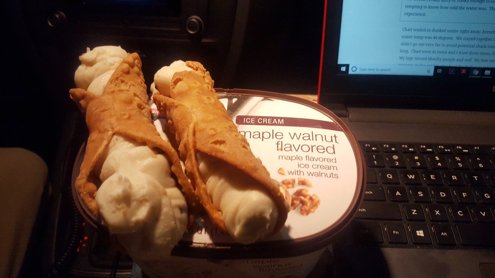We ended up in a little town called Ellsworth and stopped at a grocery store for a bathroom break. This also lead to trying a regular ricotta cannoli and their walnut caramel ice cream.
