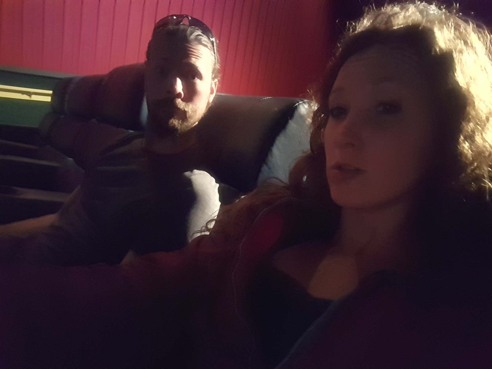 • Chad scrolling through the news feed while I pull out the sleeping gear (blankets + pillows) from the truck through the folding back seats. Pretty sneaky, huh?