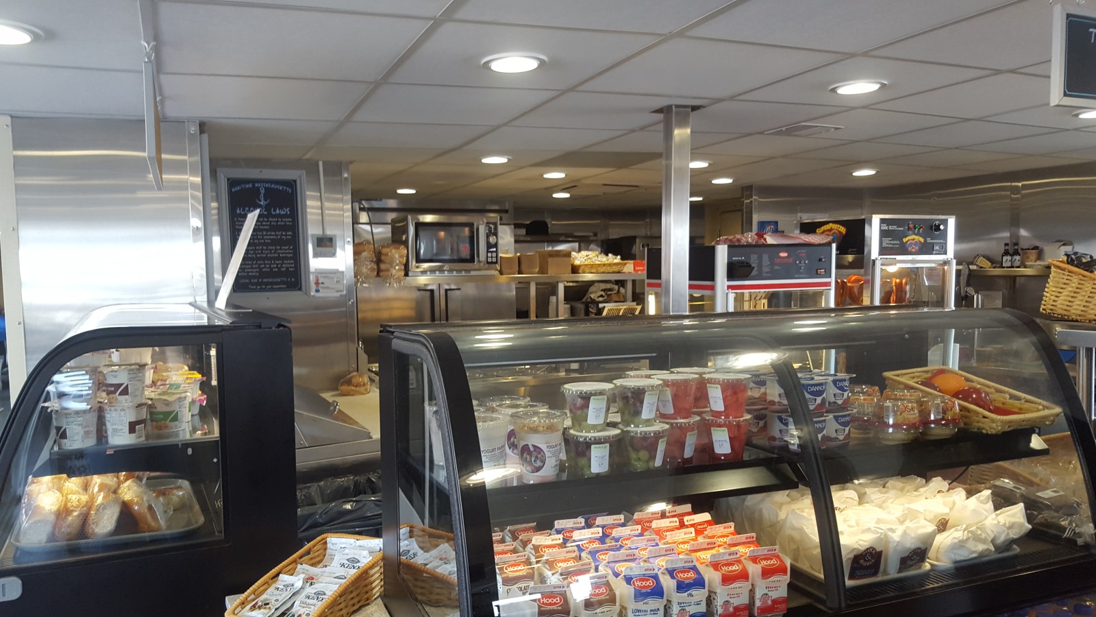 We woke at Cracker Barrel about two hours away from our ferry port at Woods Hole late (9 a.m.), and we started off the morning with pit stop at a fancy-looking local grocery store. The inside decor was designed after their historic town buildings and architecture. From the deli, we tried their eggplant lasagna ($10???? For a slice) and a ¼ lb of chicken & cranberry salad ($2). We were bummed that the lasagna cost what it did and we still had to heat it up! Should have just gone to a restaurant!