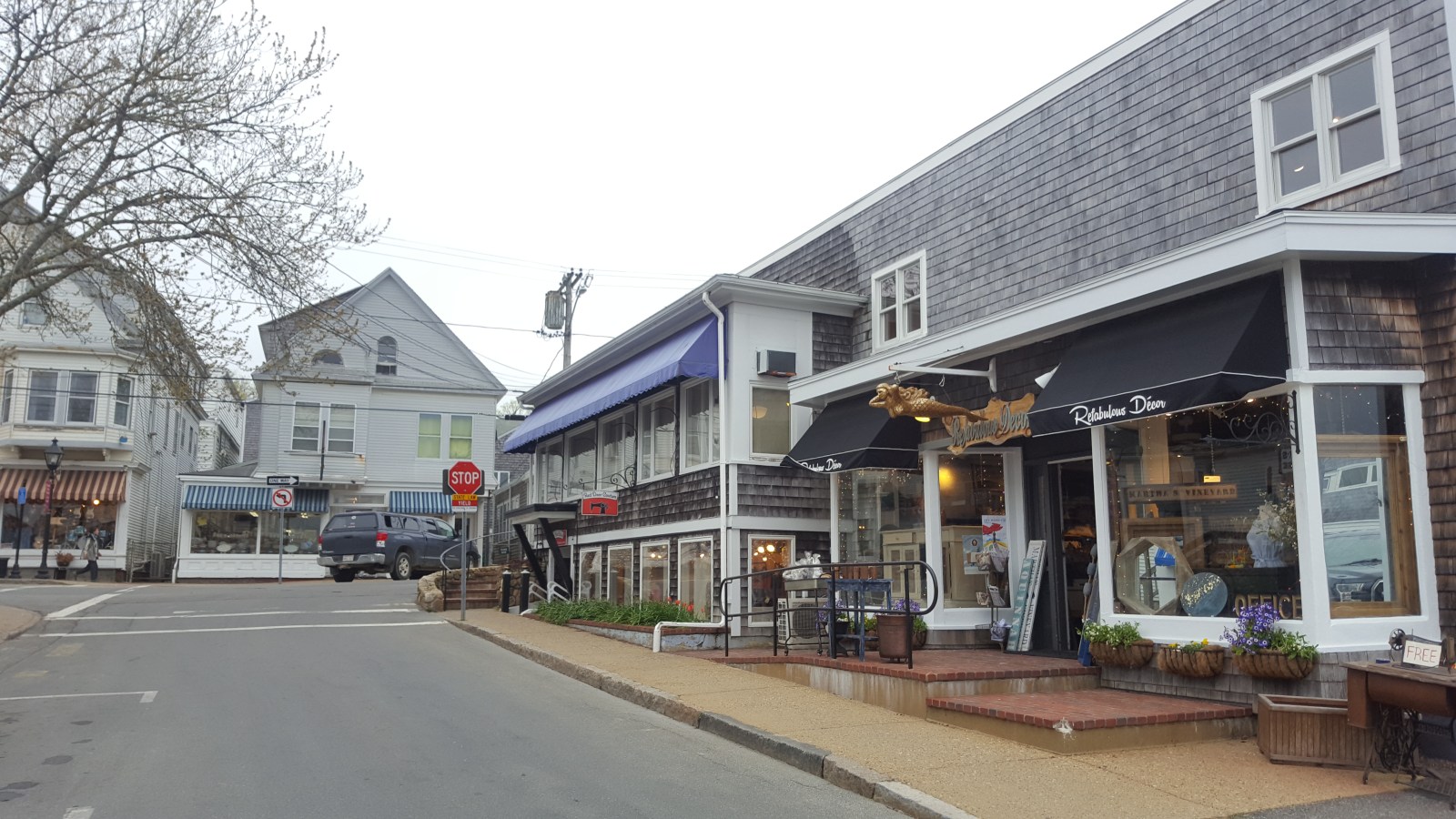 I asked about the grey shingles on the side of the homes and he told us the cedar siding is great for this area because of the salty air (it doesn’t erode as fast as other siding). With the grey home, grey sky and no greenery on the trees yet, the whole place seemed really depressing. It’s also the off-season for tourism, so a lot of the shops are closed and there aren’t very many people coming/going.