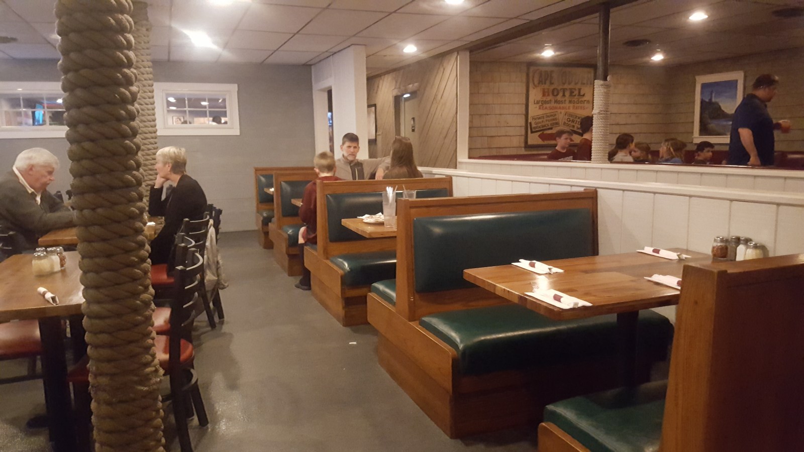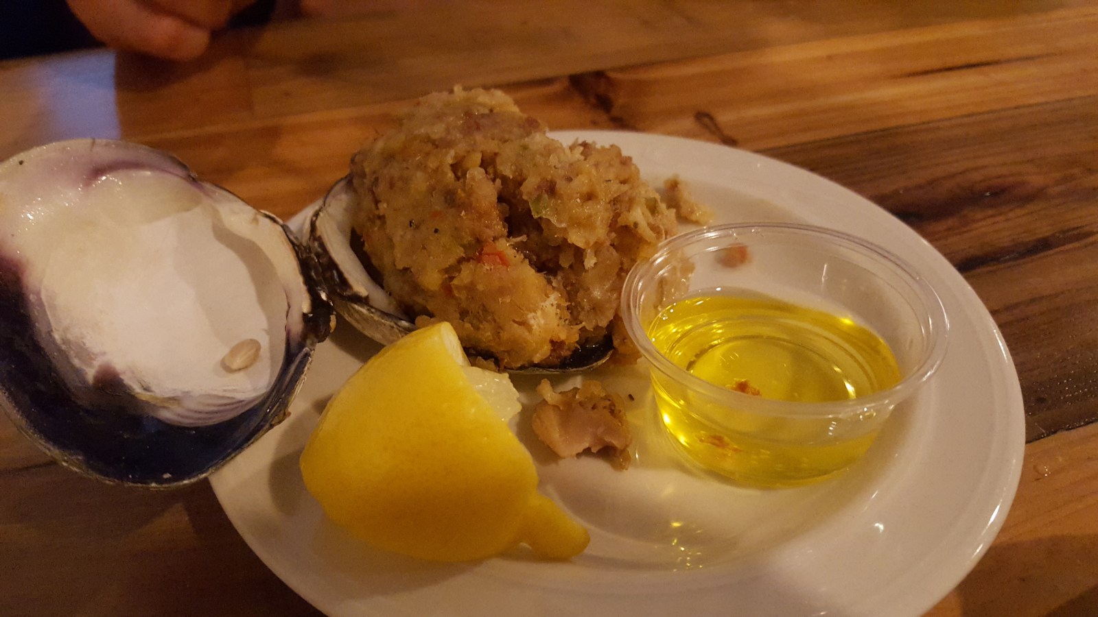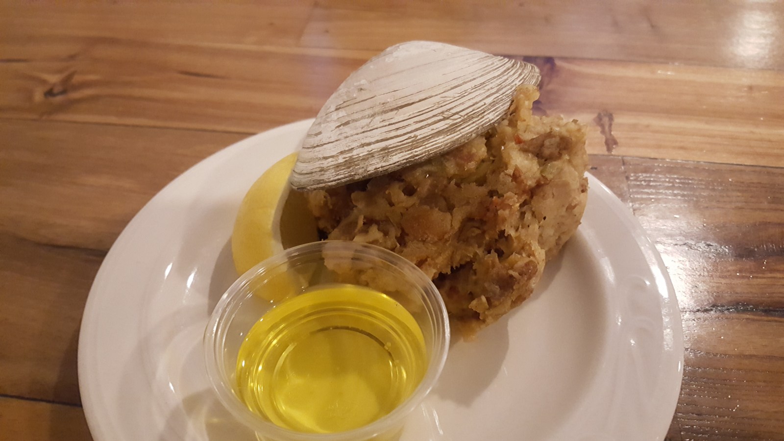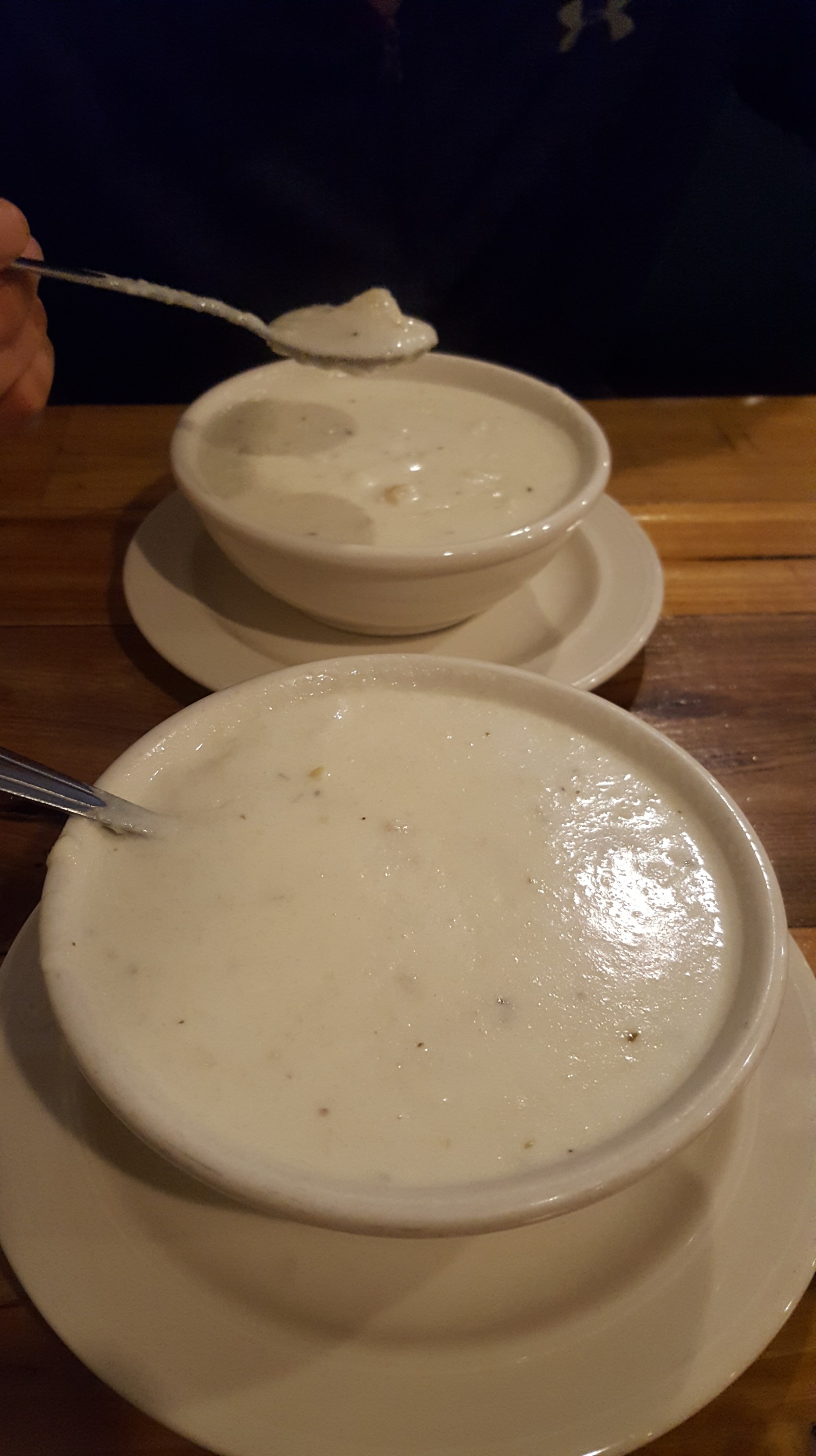 For dinner, we tired their New England Clam Chowder (chow-der), scallops (skaaal-ups) and a Quahog (ko-hog). The soup was creamy and yummy. Chad liked the scallops a lot (maybe a pass for me) and the quahog was yummy. It was like stuffing made with the clam meat, breading, peppers, spices, etc. You can spritz lemon and pour butter over the stuffing or dip it.