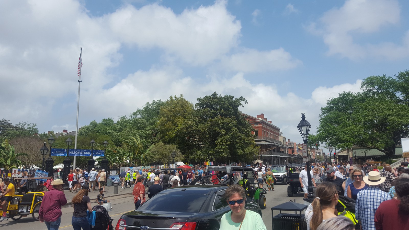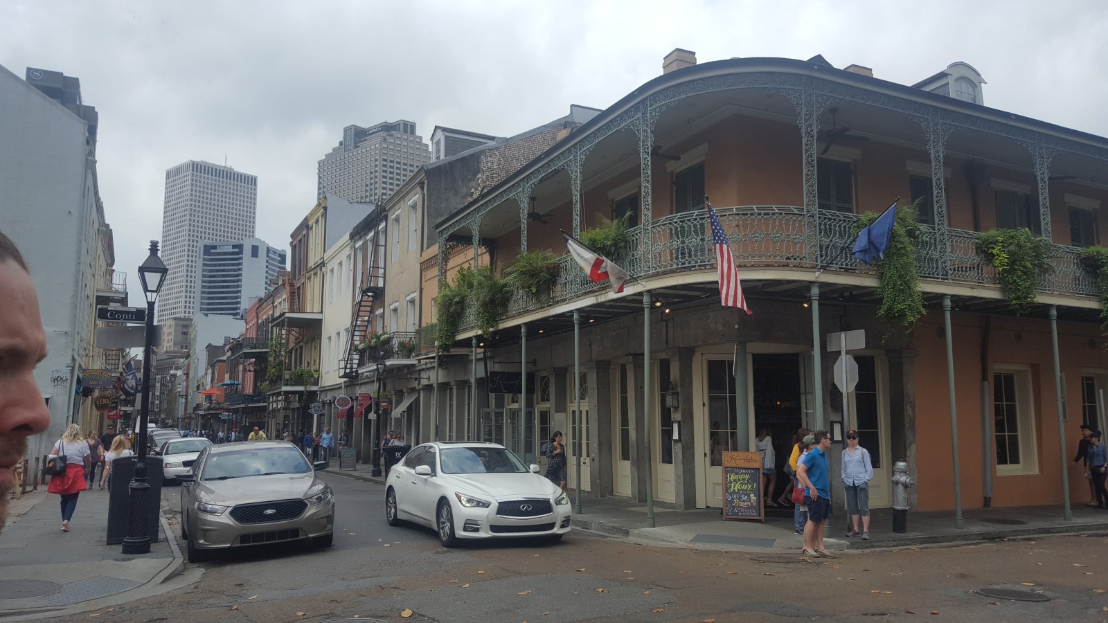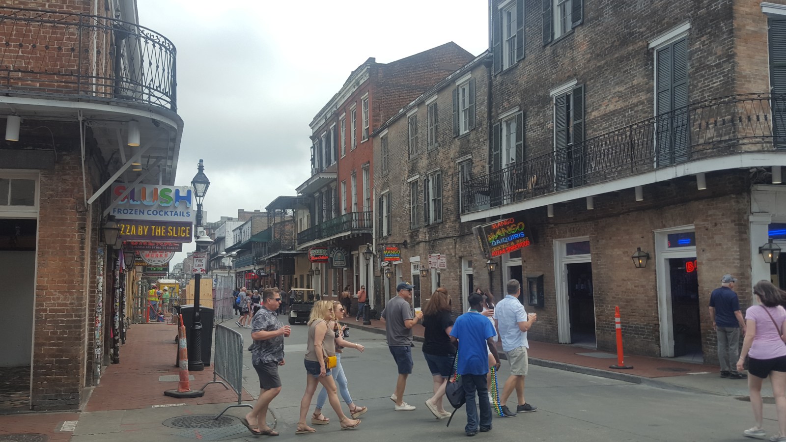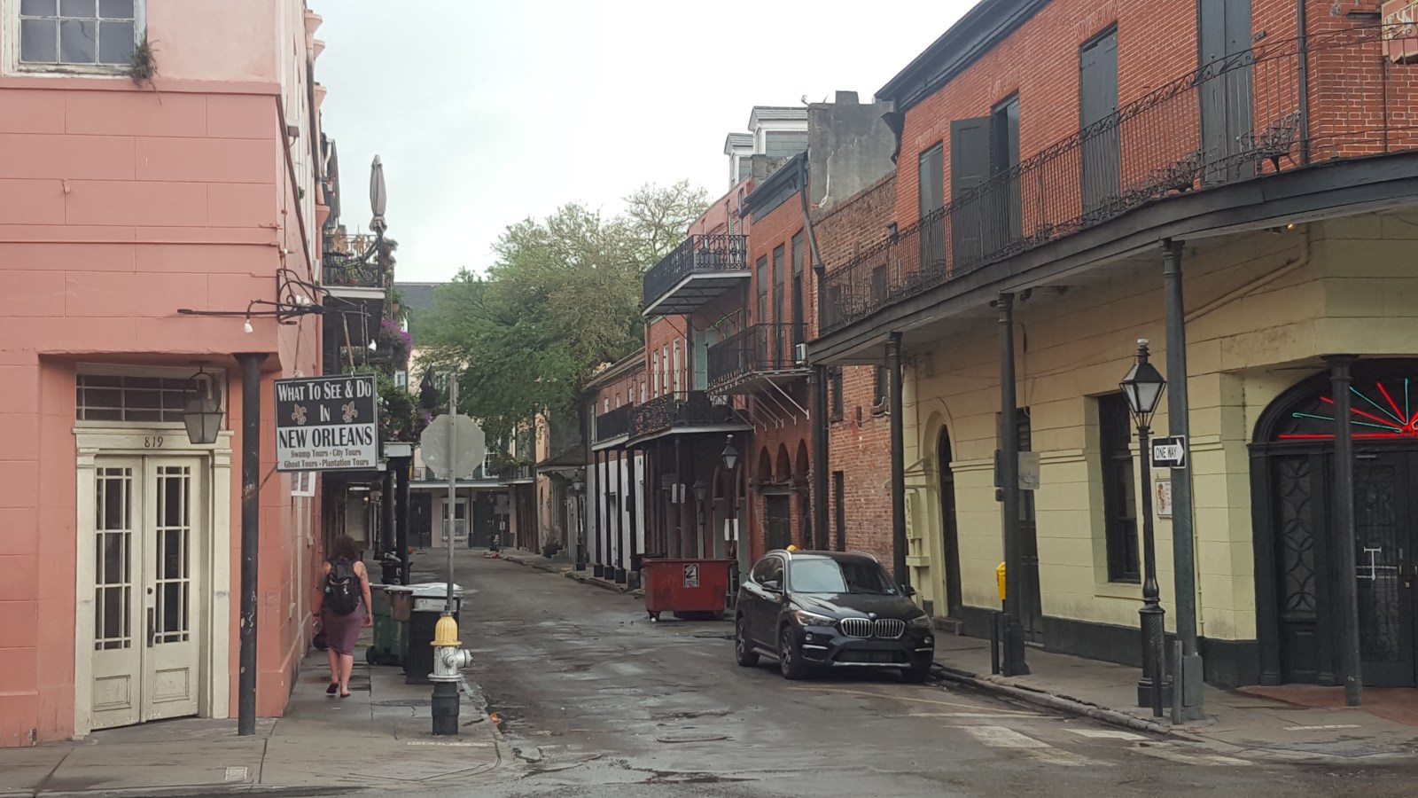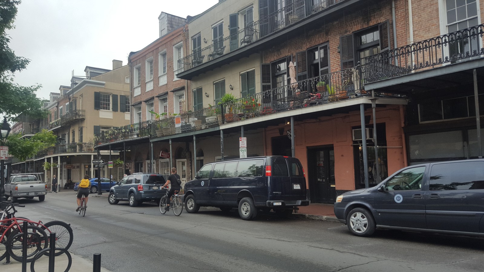 We were able to find parking at a lot right behind Cafe Du Monde; super lucky guess on my part, and we strolled the streets on the way to the cafe. When we were walking down some of the sidewalks, a large water truck was driving through spraying the streets with soapy water.
