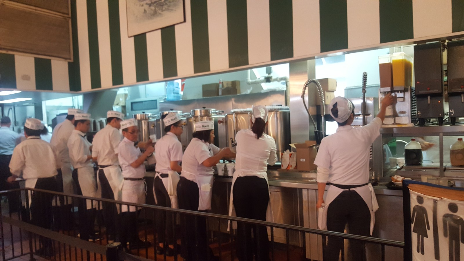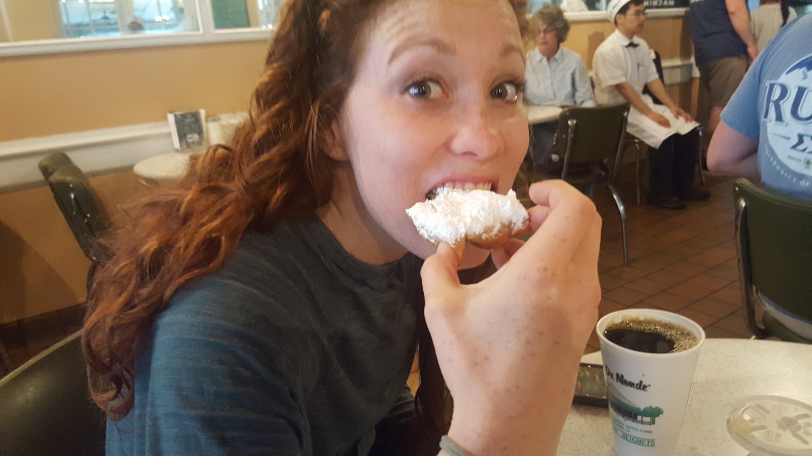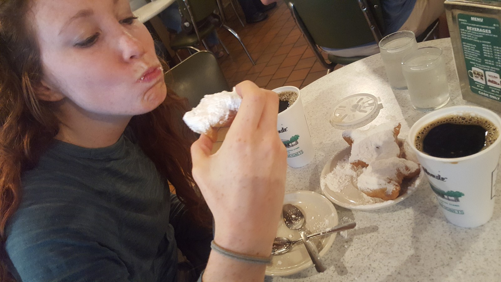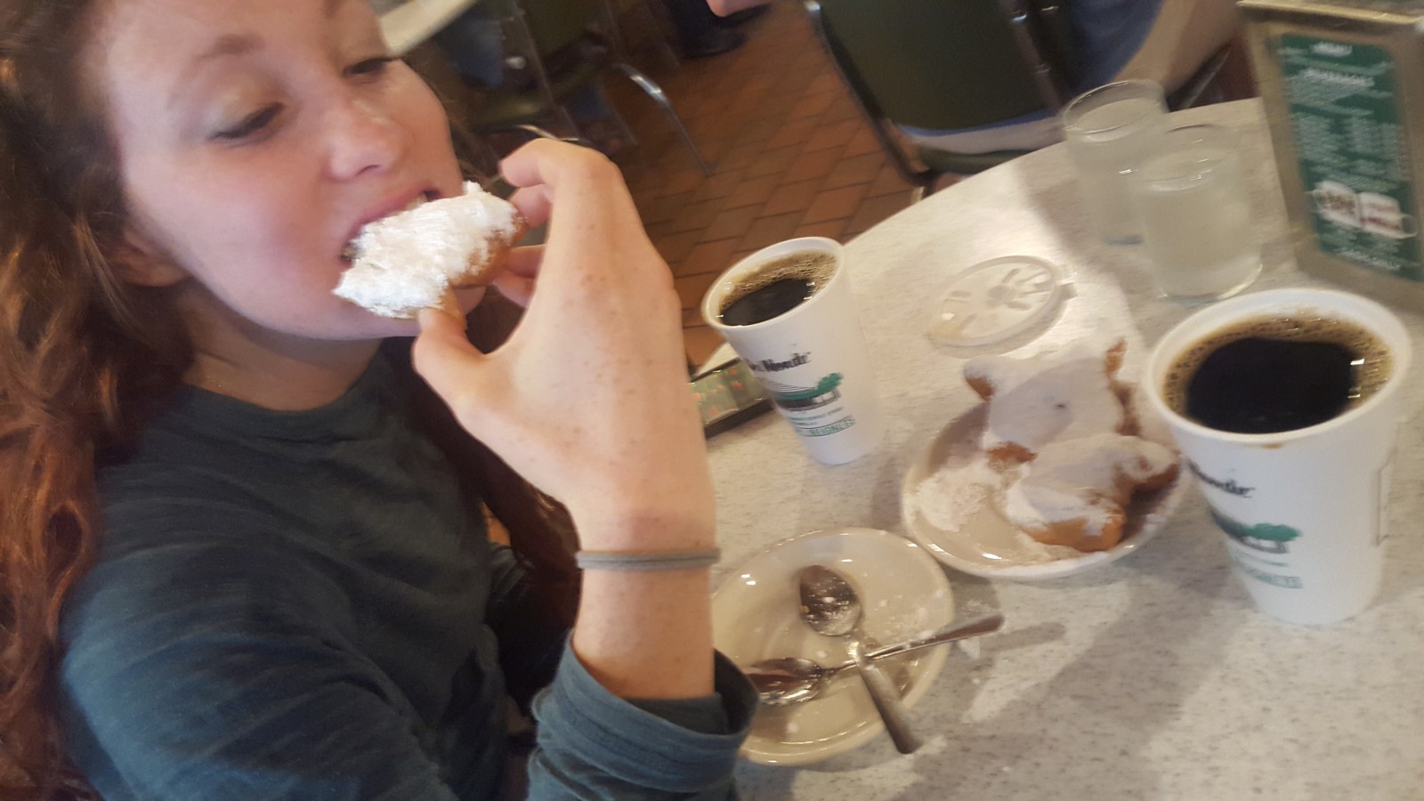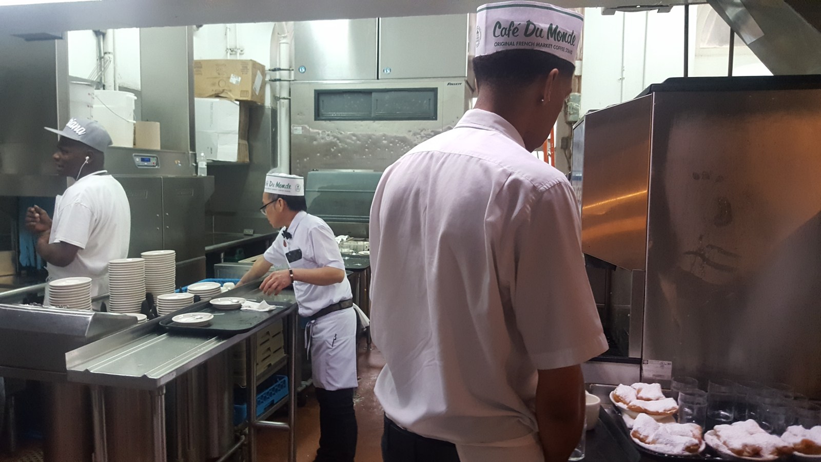 We stumbled into Cafe Du Monde and went inside to try the food. We had to use the restroom and the locations of the bathrooms were actually back inside the kitchen. So we got to see a little bit of the magic!