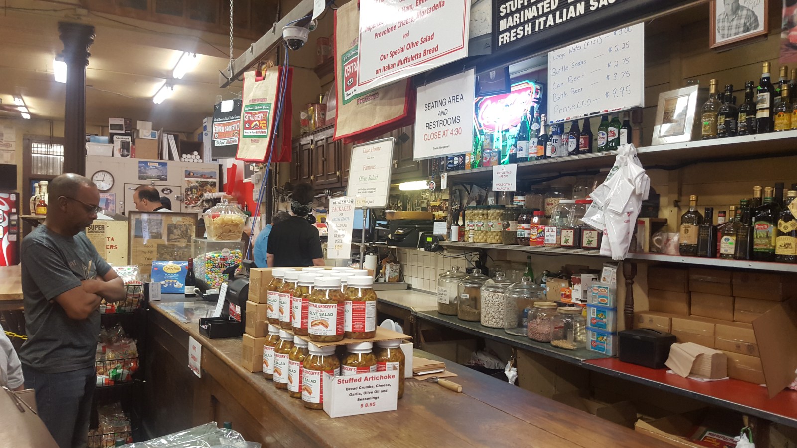 By the time we looped back to the Italian grocery store, they were letting patrons in. There was already a line with at least five people in front of us waiting to get a sandwich. We could order a half sandwich, whole sandwich, or a supreme sandwich.