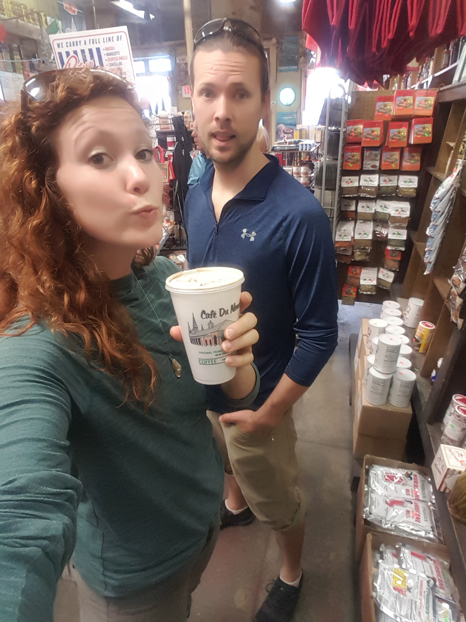 Today we were focusing on hitting the French Quarter to visit Cafe Du Monde for coffee and to tackle an Italian sandwich. It's a famous Italian sandwich called the Muffalata and it's layered with different varieties of Italian meats and cheeses. It sounds good, but we weren't sure what size to get!