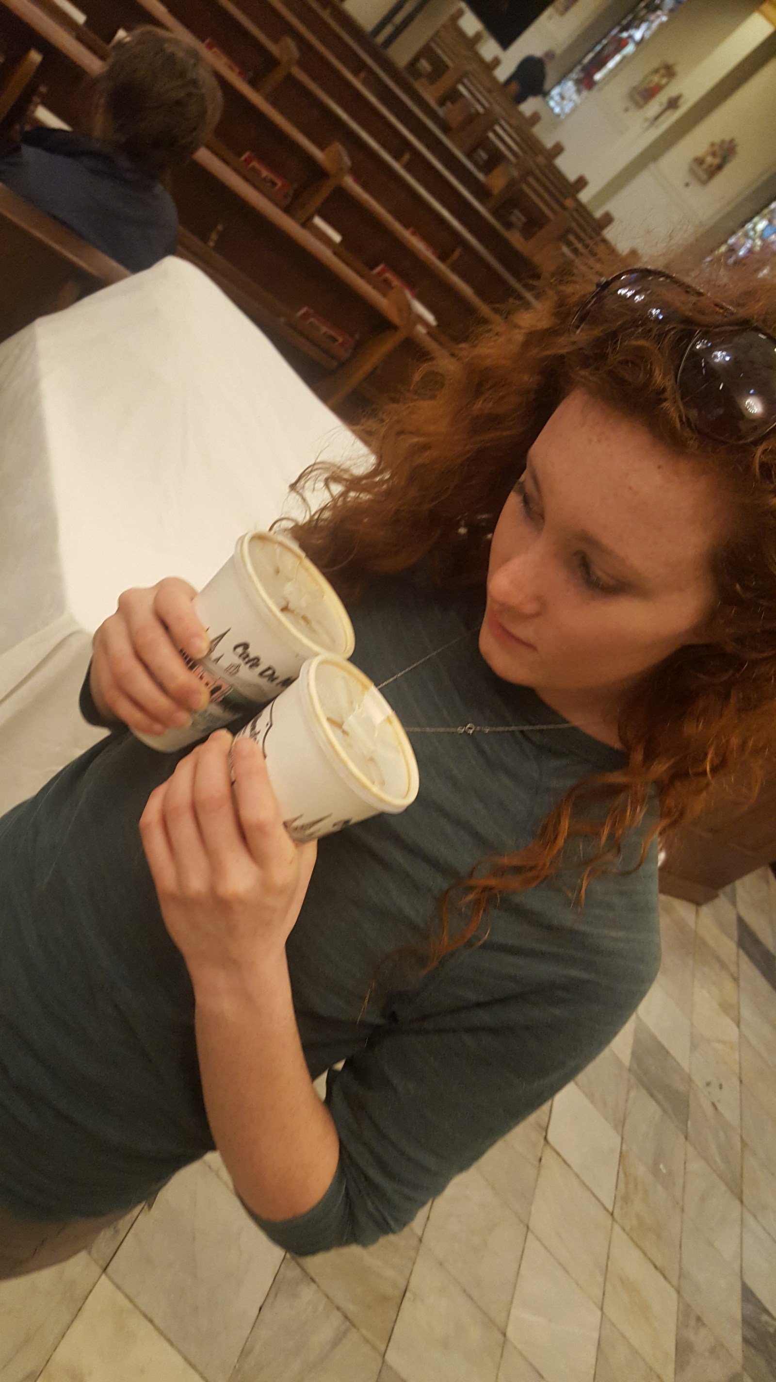 Chad handed me his coffee so he could snap a photo of a statue and I proceeded to look around the church in awe. When he wanted his coffee back, I had no idea which one was mine since I was so caught up with my surroundings. Chad laughed and knew this would happen and selected his from my hands. Silly Katie, so overwhelmed with music and pretty things.