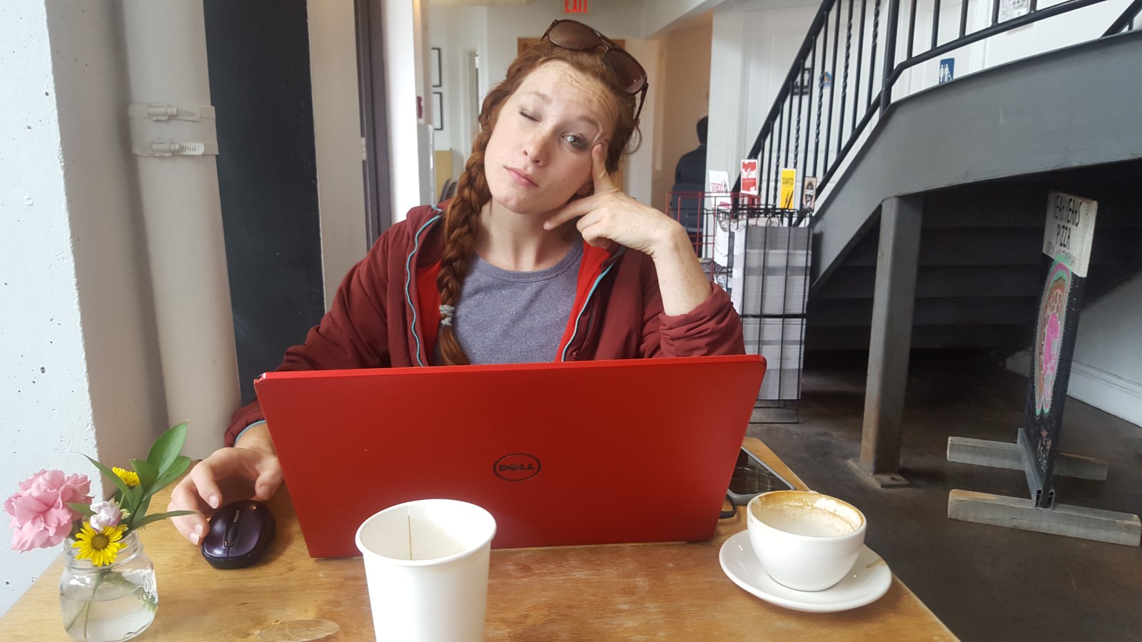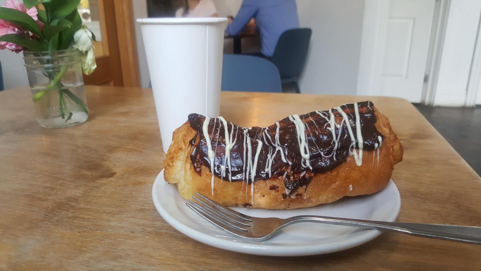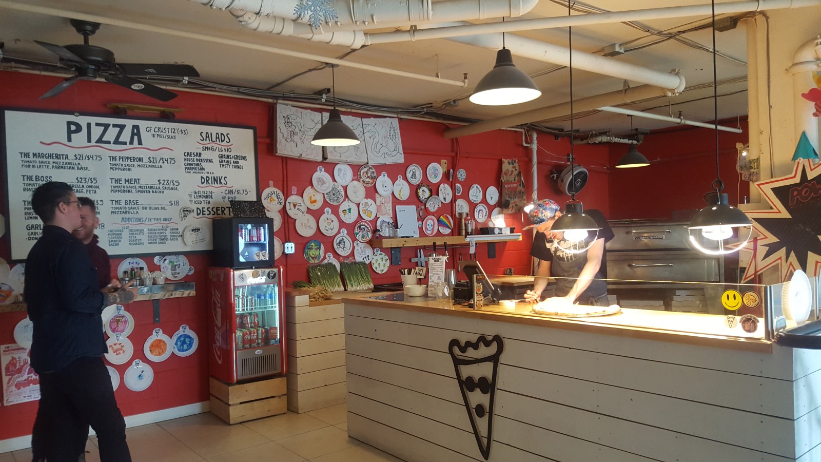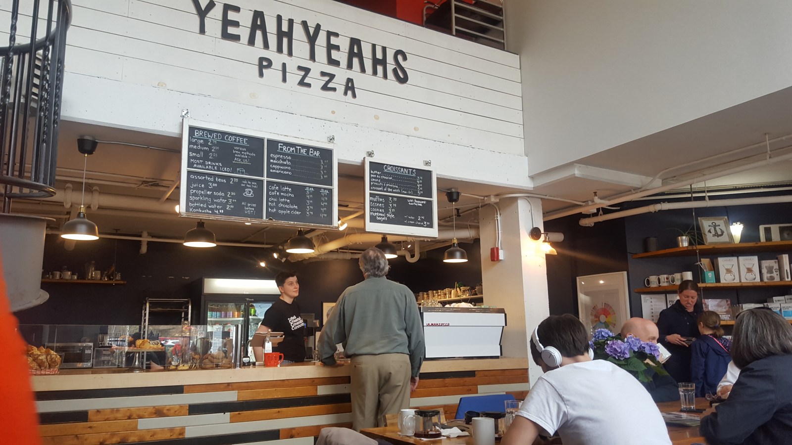 We officially woke up in the coffee shop with a beautiful looking croissant thing filled with strawberries and topped with chocolate. Yes, amazing. Their drip coffee was delish with the pastry. At 11 a.m., the pizza place above the coffee shop opened and we were able to grab the very first slice of pizza! Very important, I know.