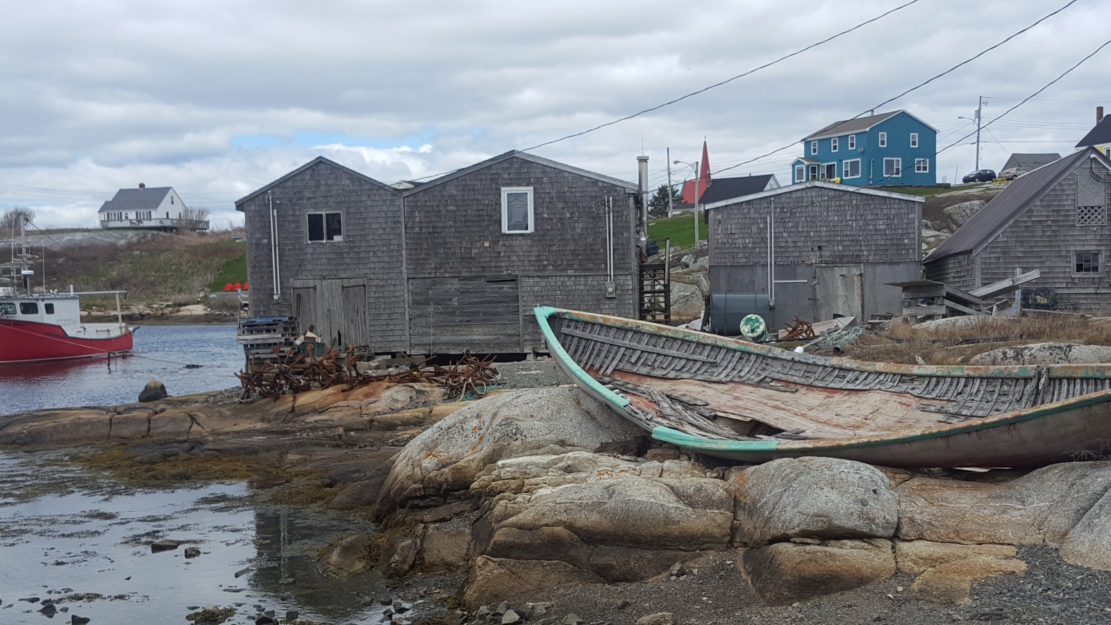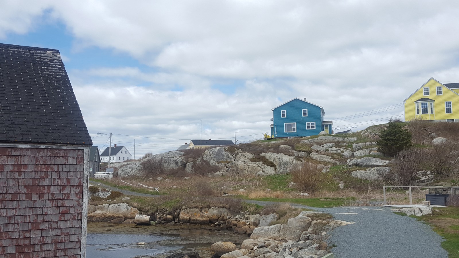 Driving 45 minutes south to the ocean boarder, we stopped at Peggy’s Cove to check out the large rocks. While on the drive out there, we watched the homes transition from city-feeling to being out-in-the-sticks buildings. This includes boat shacks, puddles of water your lawns (ponds), algae everywhere and siding that has seen better days (the salty air is a little harsh).