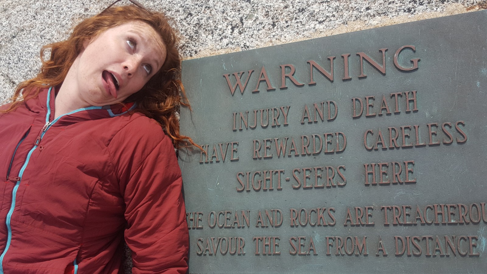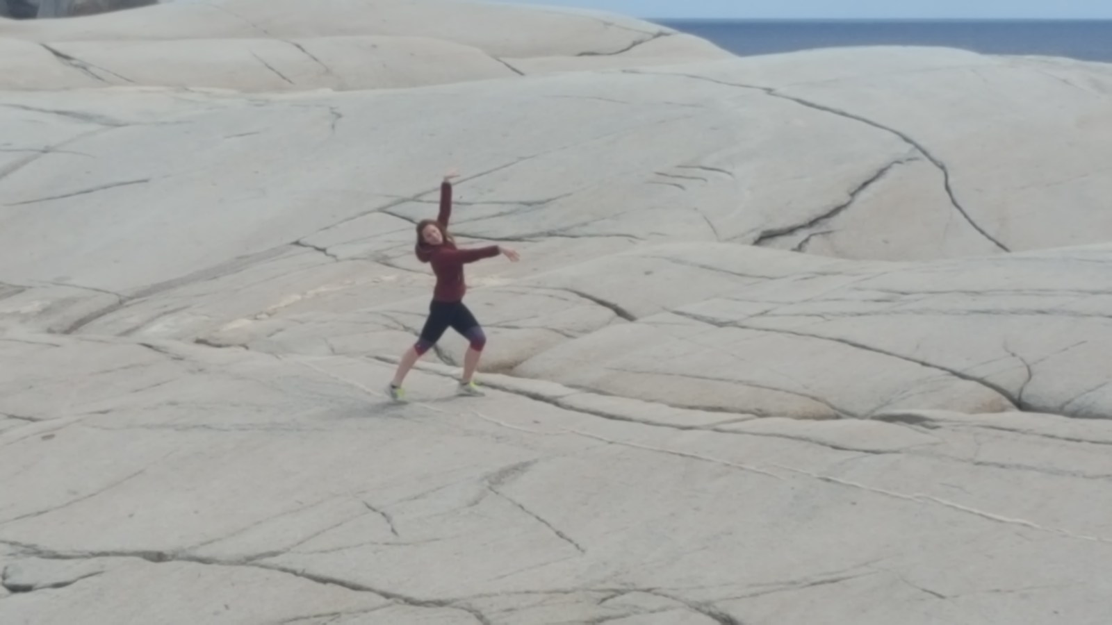 The wind was cold, the water seemed cold (it’s dangerous to touch the ocean on these rocks because the waves/tides are unpredictable), and we were cold. We played on the rocks, touched the lighthouse and climbed back into the car.