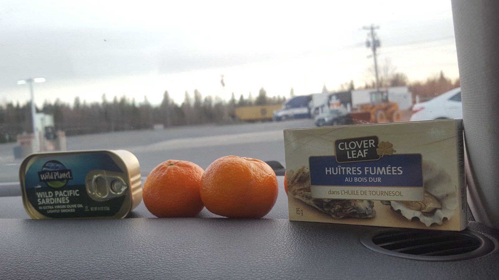 Drive, drive, drive. We drove all day and into the evening. At a gas station, I brought out the clementines, tried the smoked clams and waited on the sardines. The clams were actually really good!!