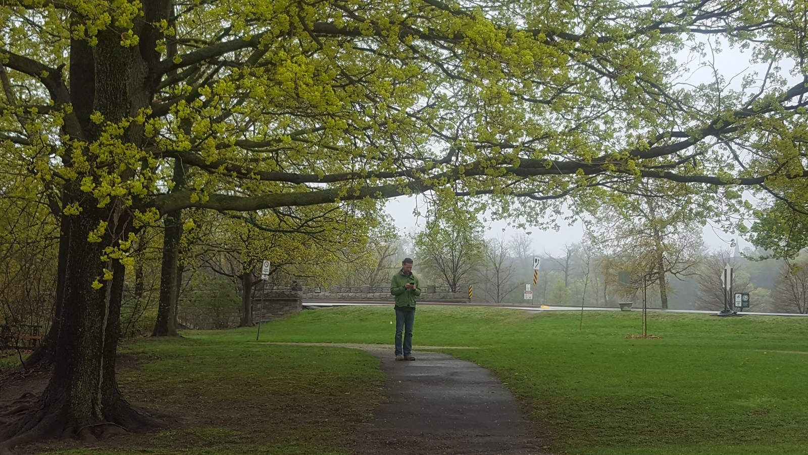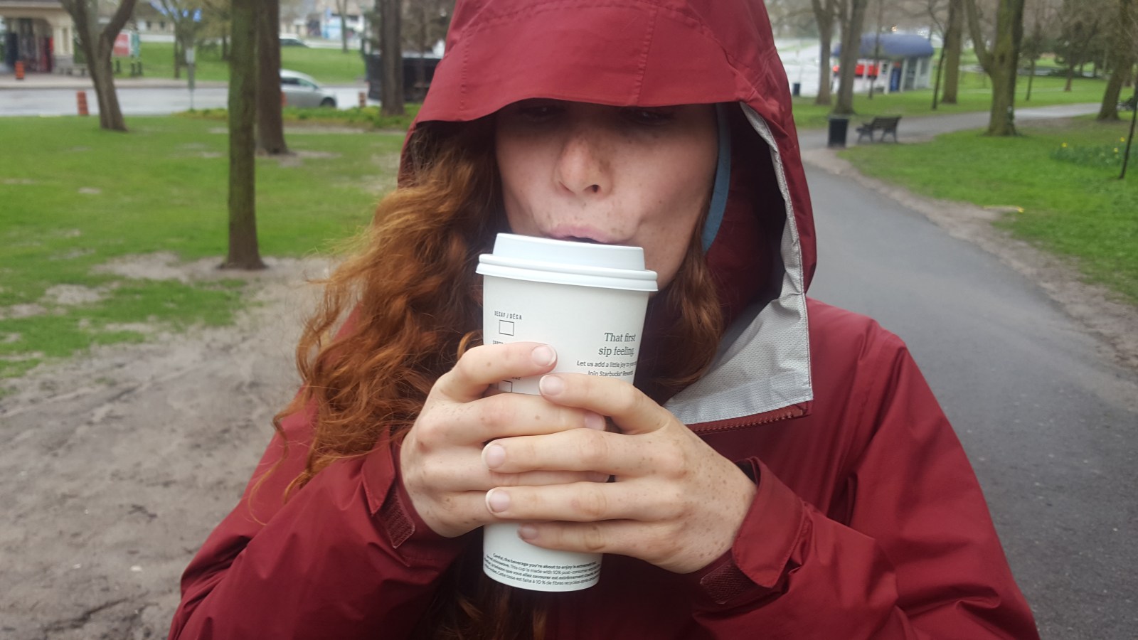 Weather: drizzly, wet, cloudy, kinda chilly