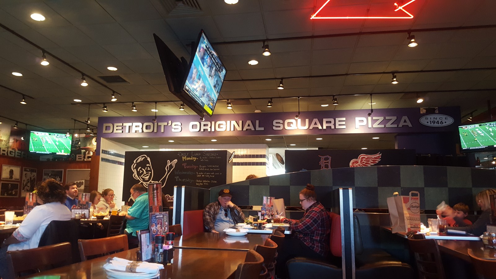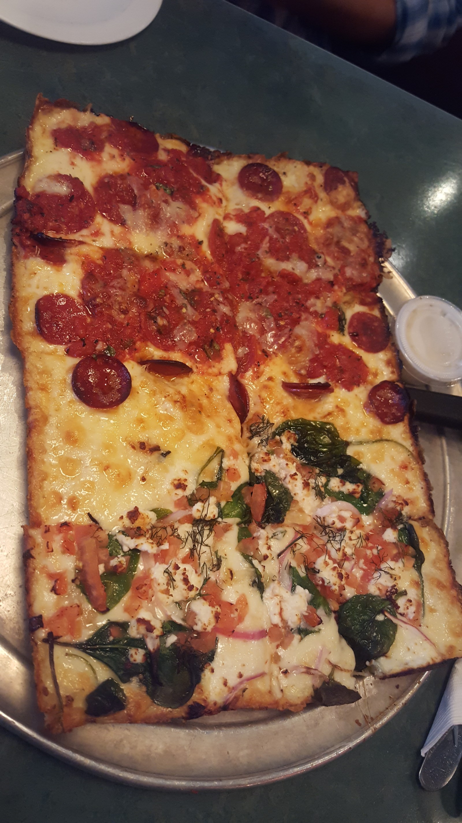 The pizza was pretty good (how can it not if your really hungry?), but pizza is kinda pizza. Some crusts are thicker than others. This one happened to be thick. Apparently, the pizza guy made the wrong pizza half and the waitress had a new 4 piece fetta remade. Free pizza is good pizza! Thanks Buddy's Pizza!