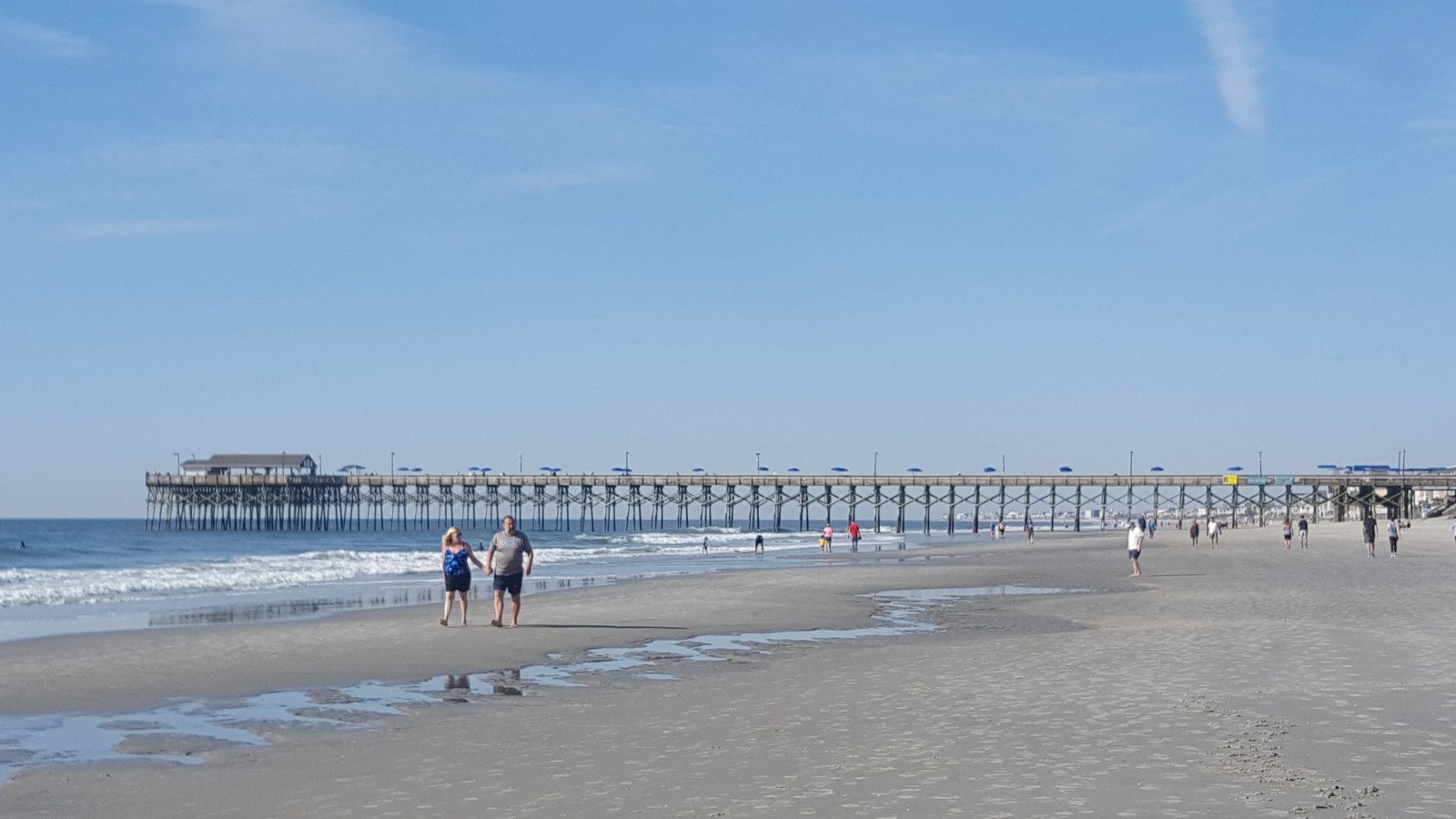 First stop, Myrtle Beach, SC (before the strong sun rays shine down)! We slept outside just outside of town at a Cracker Barrel and I was stoked to try beaching again. It was chilly (maybe low 70s) and we found some free parking a little away from the major Myrtle Beach (Surfside Beach). They also had a shower pole! Perfect!