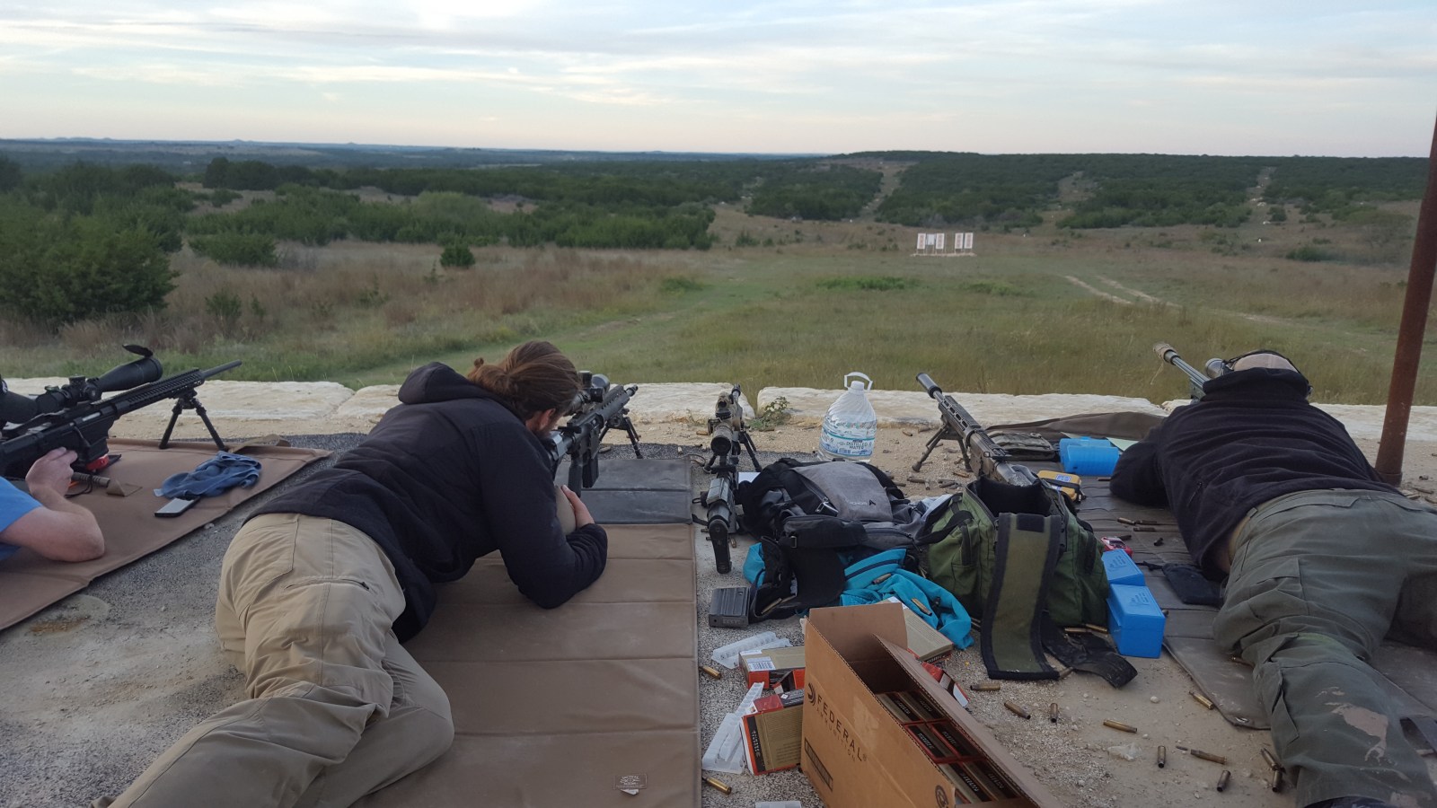 After completing training, I was able to hit gongs set into the Texan rolling hills over 1200 meters away with a .308 and Chad (dealing with the setting sun and dark shadows) was able to get out to 1000 meters before the landscapes were unreadable.