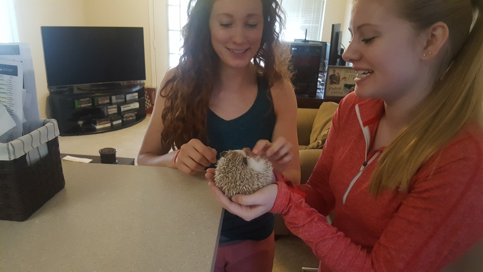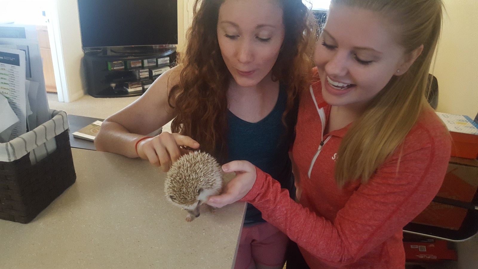 Henry the hedge hog was super cute! He had surgery the week before because his eye fell out (I guess they have shallow eye sockets??) and had it removed. Now Henry is a one-eyed fella who has the cutest little sniffer nose and nibbles on your fingers. So cute!