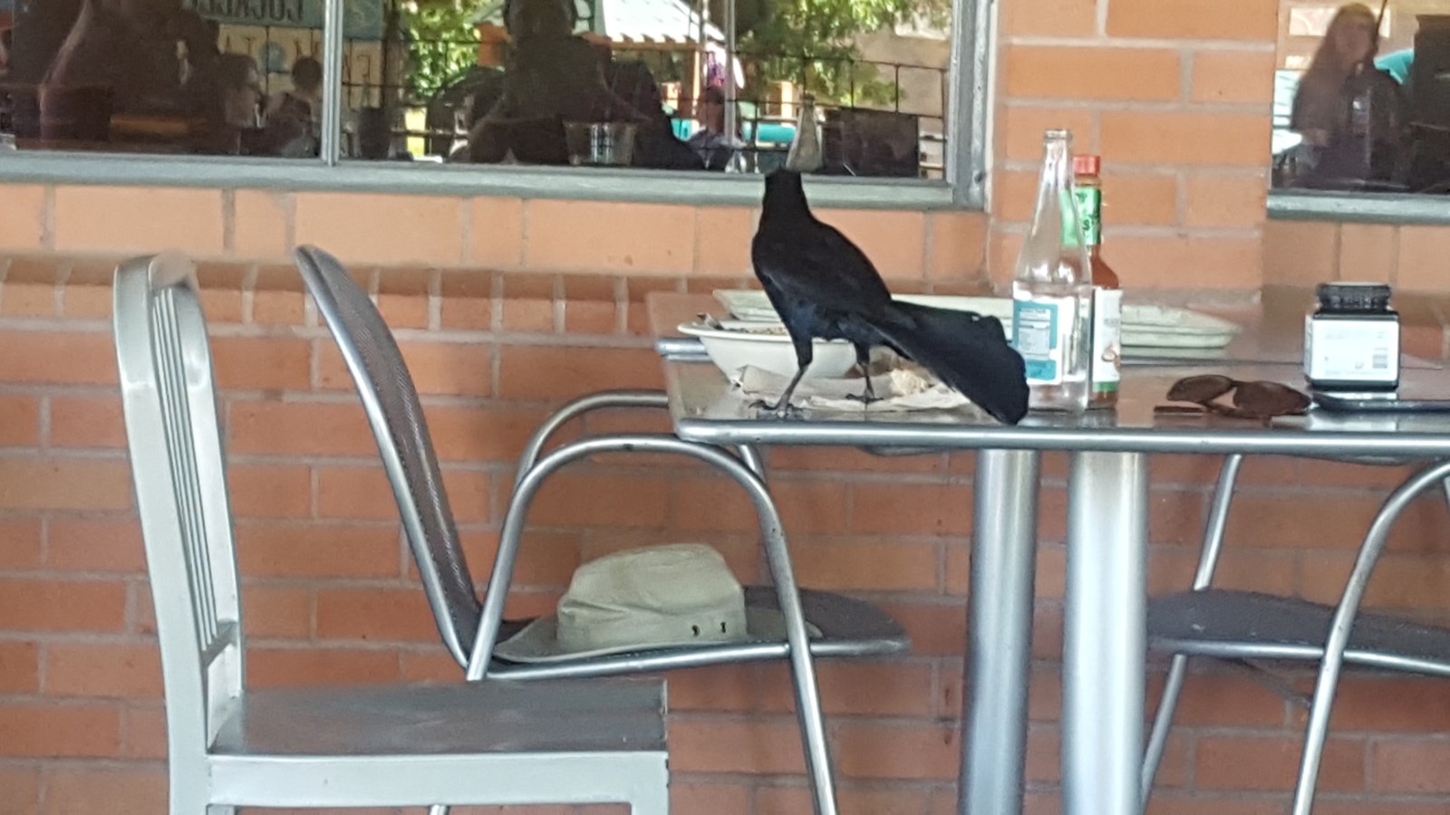 Throughout our conversation time, there were dive bombing black birds that would come out of no where and act like they were going to peck your eyes out. It’s like a scene from Alfred Hitchcock’s The Birds! There were even times where we had to fend off lunches left on the table while the owner went to grab napkins. Those tiny little vultures wouldn’t quit!