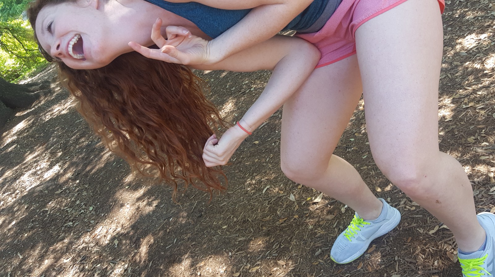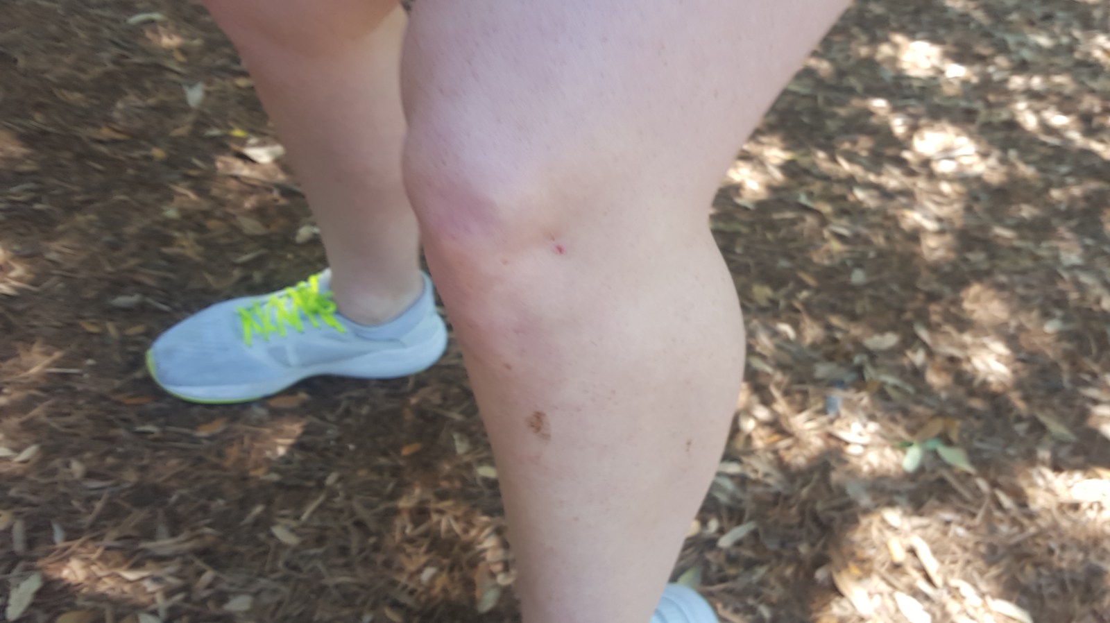 There was a massive tree in middle of the nature area (it had earned the Tree of the Year award apparently) and we went to stand under it. While looking around, I was hit from above with a splat of black bird poop. Casualties included my left side shoulder, thigh and calf. What a blow!