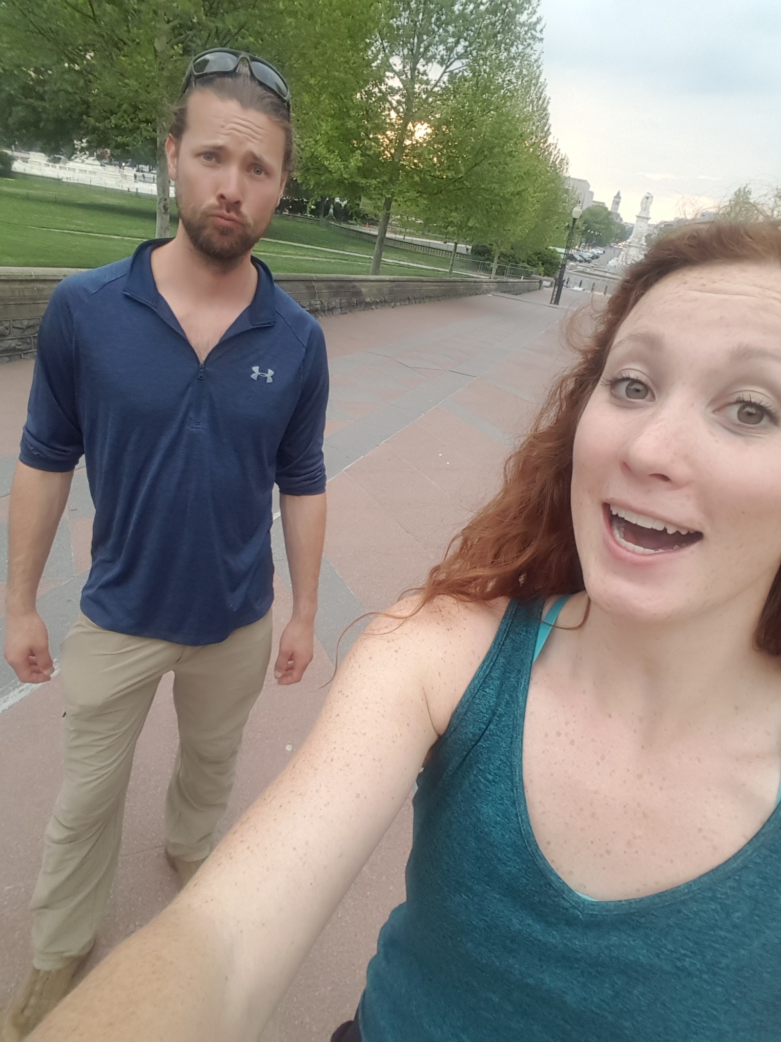 Chad always carries a flashlight and pocket knife with him, and security didn’t like the wee pocket knife. Options: either throw it away or go put it in the car. Back to the car we went. Then back towards the museum. (That’s a little over 3 miles right there and we haven’t even seen anything yet!).